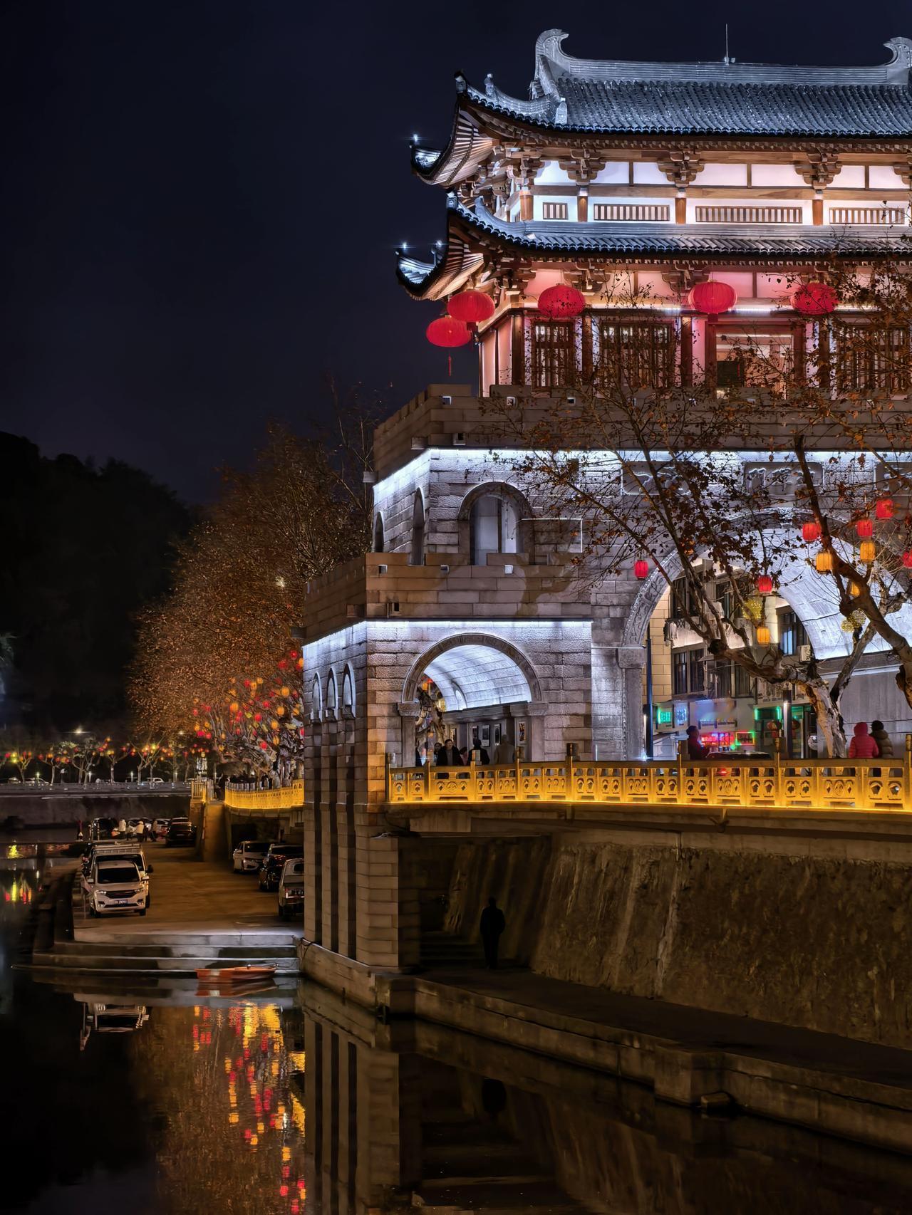 古韵流金,年味正浓 夜色里的迎晖门,灯笼如星,倒影如画。 老城不老,只是把故事藏进了光影里。 新年至此,愿你我皆得平安喜乐,岁岁常欢愉。 缙云老城