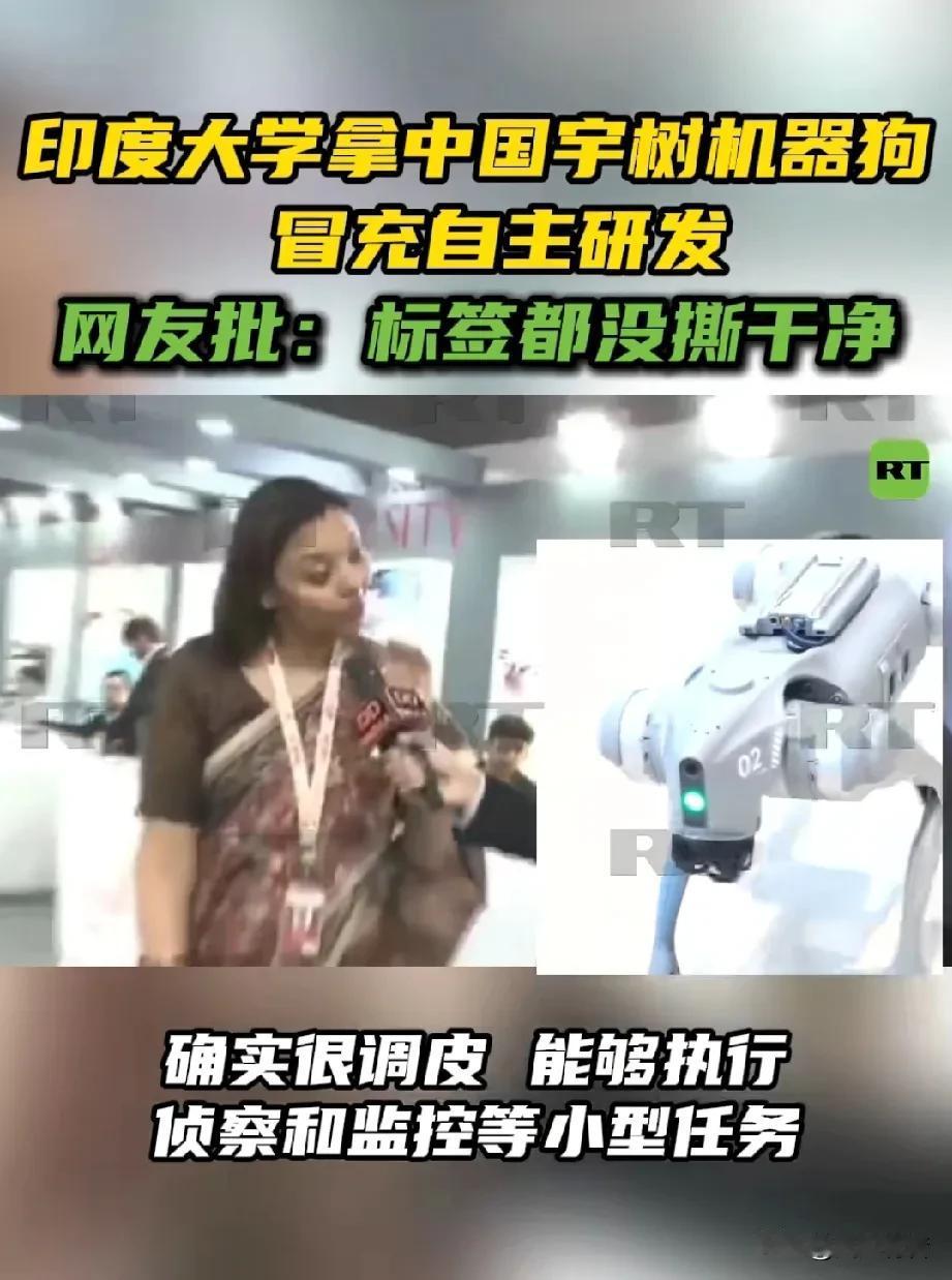 印度一大学向媒体推介“自主研发”的机器狗,被曝造假后辩称是购自中国的教学工具。 据《今日俄罗斯》等媒体报道,2月16日,正在印度新德里举行的“印度人工智能影响力峰会”爆出一起造假丑闻。加尔戈蒂亚斯大学(Galgotias University)展示一款名为 “Orion”(猎户座)的四足机器人。在流传甚广的现场视频中,该校教授面对记者镜头介绍称,这款机器狗是由该校的“卓越中心”自主开发的。 科技爱好者迅速指出,这款机器人实际上是中国杭州宇树科技(Unitree) 生产的 Unitree Go2,售价仅约20万至30万卢比(2206美元至3309美元)。 加尔戈蒂亚斯大学在 X(原推特)上紧急发布声明,辩称“这只狗是购自中国的教学工具”,声称本校“一直致力于从包括美国、中国和新加坡在内的全球创新中心引进尖端技术,以确保学生获得真实的实践经验”。 印度科研机构为什么要用别人的机器狗冒充自主研发呢?根据媒体报道与分析,原因估计如下:一是急于展示科技成果。印度急于在政府主导的科技竞赛中展示“突破”,以迎合“印度制造”战略。通过展示所谓的“自主研发”机器人,希望在国际科技舞台上迅速提升自身的地位和影响力,向世界证明其科技实力。 二是核心技术依赖进口。印度在机器人研发的核心技术方面可能存在不足,依赖进口产品。在短时间内无法取得重大技术突破的情况下,为了满足成果展示的需求,选择造假这种不正当手段。 三是急功近利的政绩需求。相关高校或科研机构可能存在急功近利的心态,为了在政府面前获取政绩,获得更多的资金支持和政策倾斜,而采取造假行为来营造科技成果显著的假象。 四是重宣传轻实干文化的影响。印度社会可能存在重宣传轻实干的文化氛围,更注重表面的成果展示和宣传效果,而忽视了脚踏实地的研发工作。在这种文化影响下,造假行为可能被视为一种快速获取关注和荣誉的途径。 图片来自《今日俄罗斯》视频截图。视频中一名印度人正在向记者介绍他们“自主研发”的机器狗。其实这只机器狗购自中国。