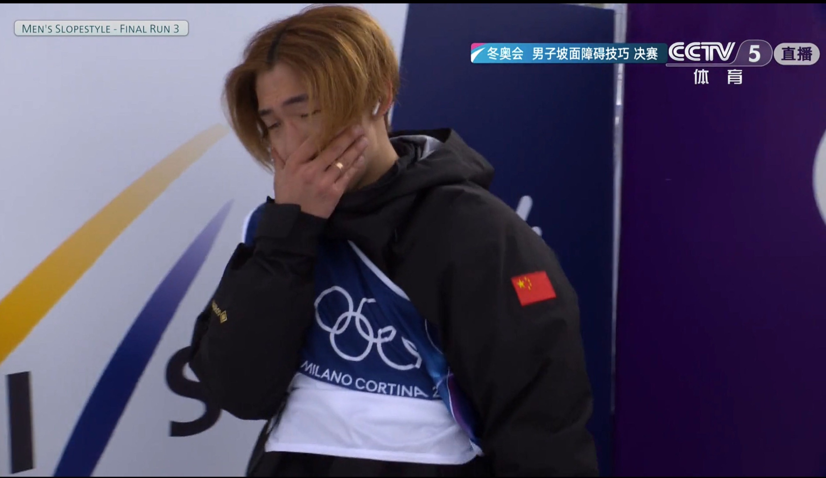 米兰冬奥会自由式滑雪女子坡面障碍技巧预赛,中国选手谷爱凌第二个出场,但她出现失误
