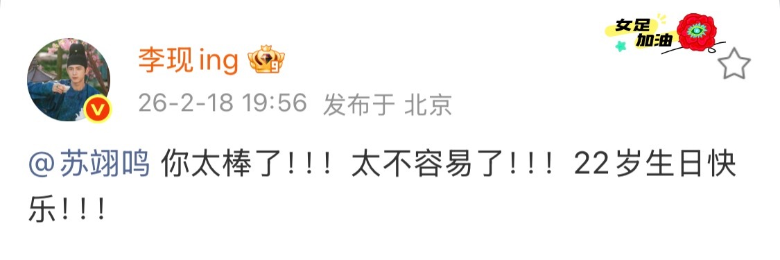 #李现祝贺苏翊鸣夺金##李现说苏翊鸣你太棒了#
