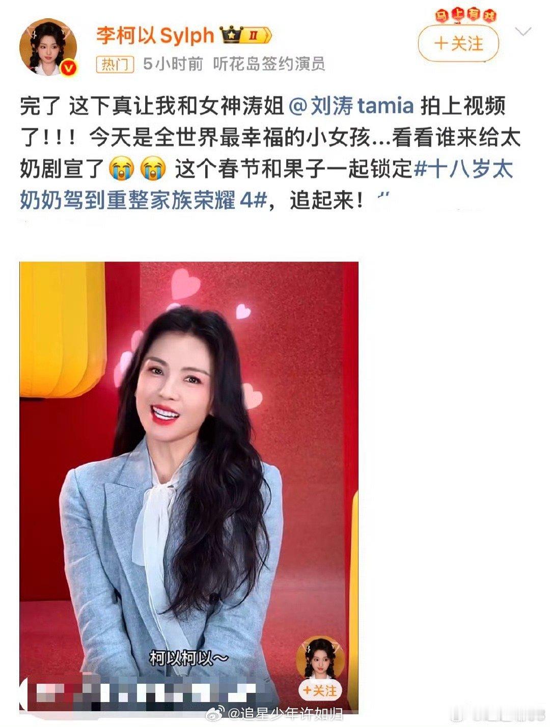 太奶摇来了我太奶 原来太奶的人脉圈这么广!刘涛李柯以同框太养眼了,一个女神一个快乐,水灵灵地把我的童年和现在连起来了~