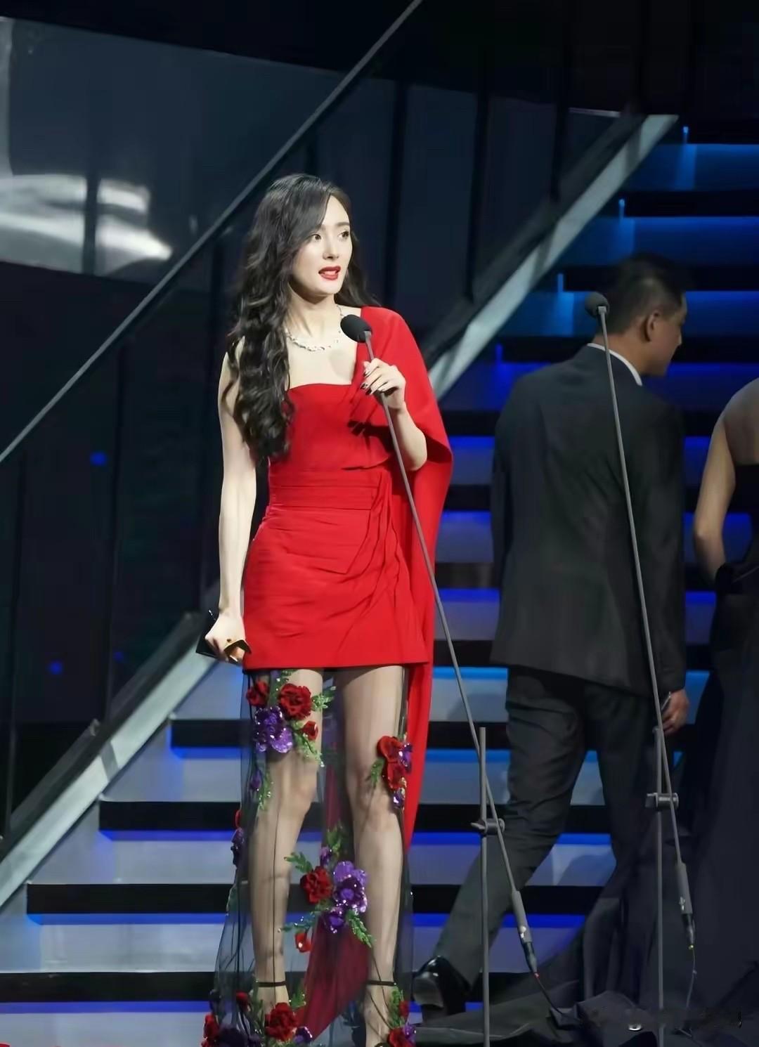 杨幂一身红裙,步步生花