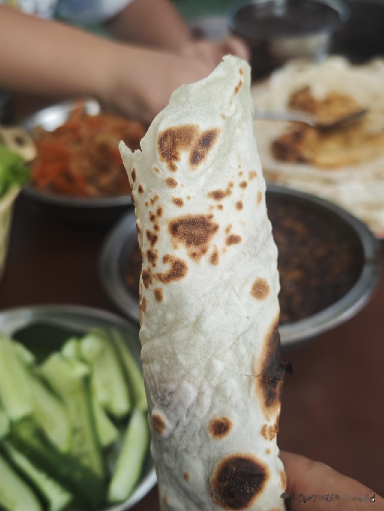 晒出我的今日美食蘸酱菜卷大饼,吃撑了,都不知道吃了多少张[爱慕][爱慕][爱慕]