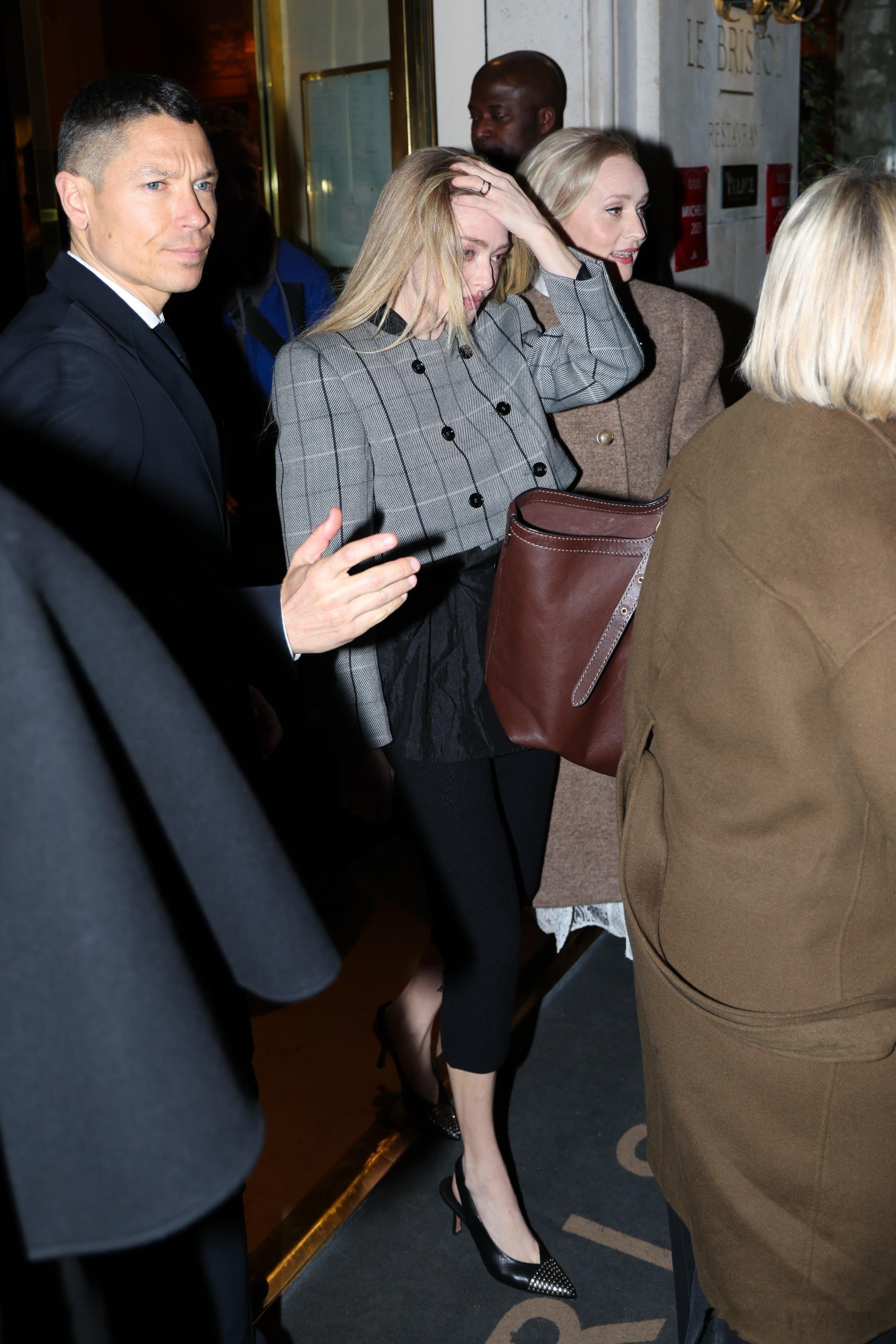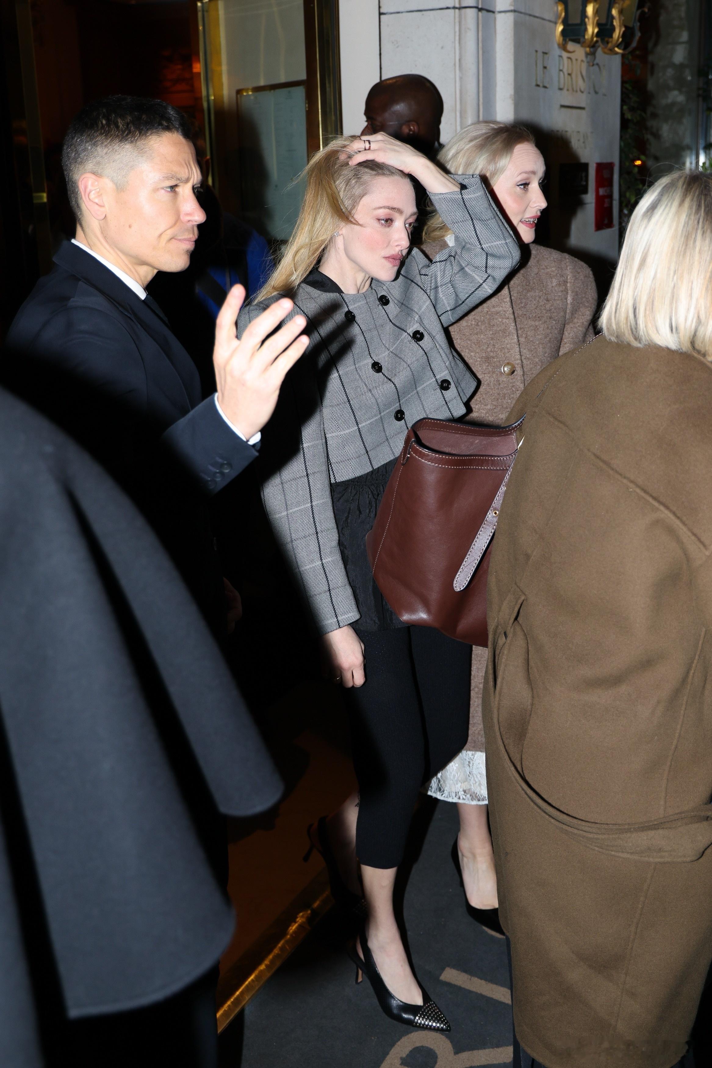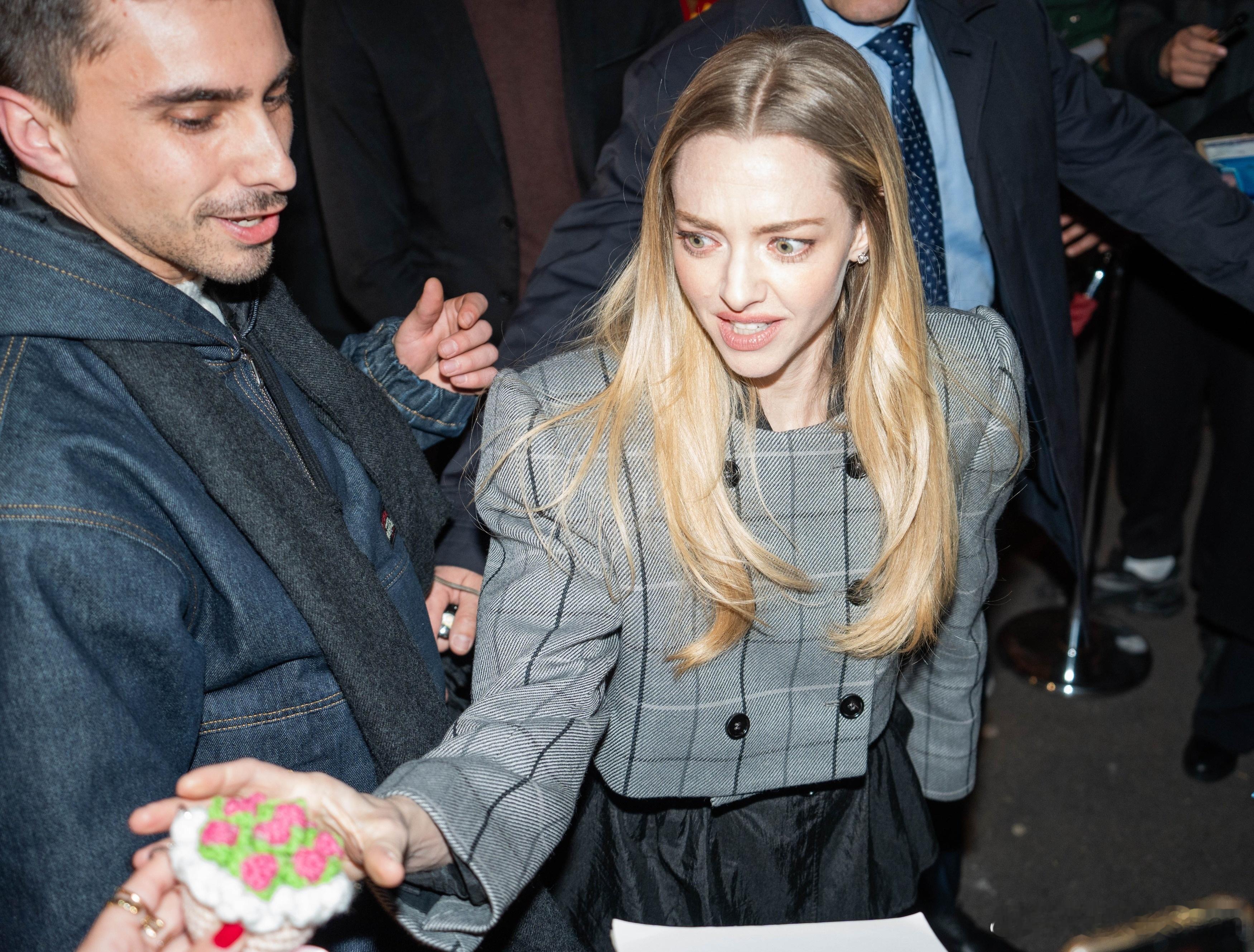 Amanda Seyfried阿曼达塞弗莱德在巴黎外出,前往出席《安·李的遗嘱》的法国首映礼,还收到了粉丝送的钩针小花束