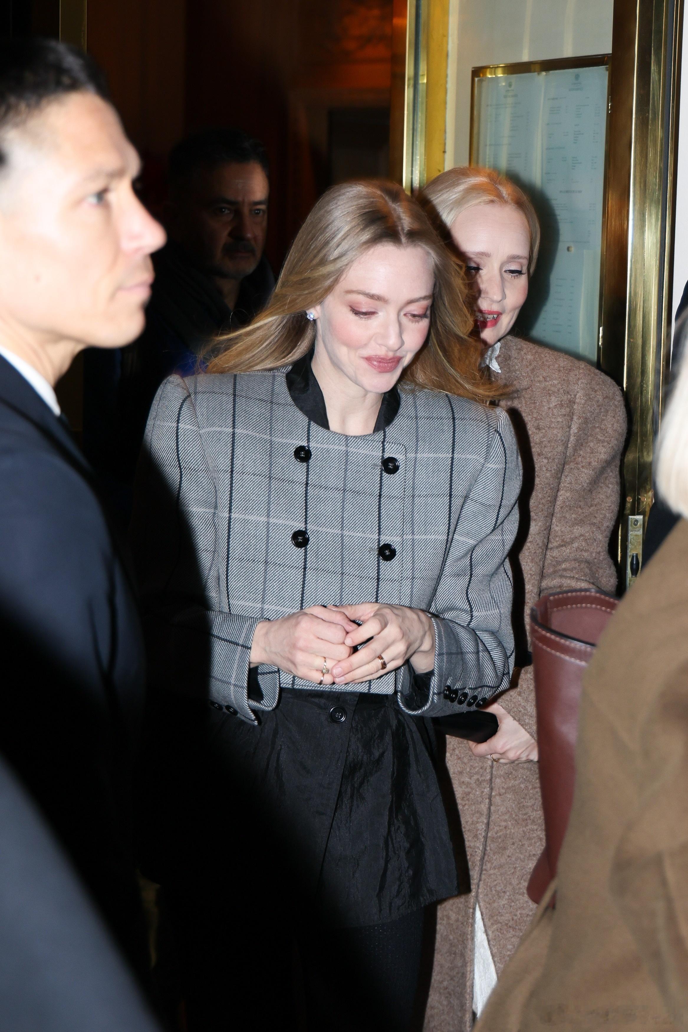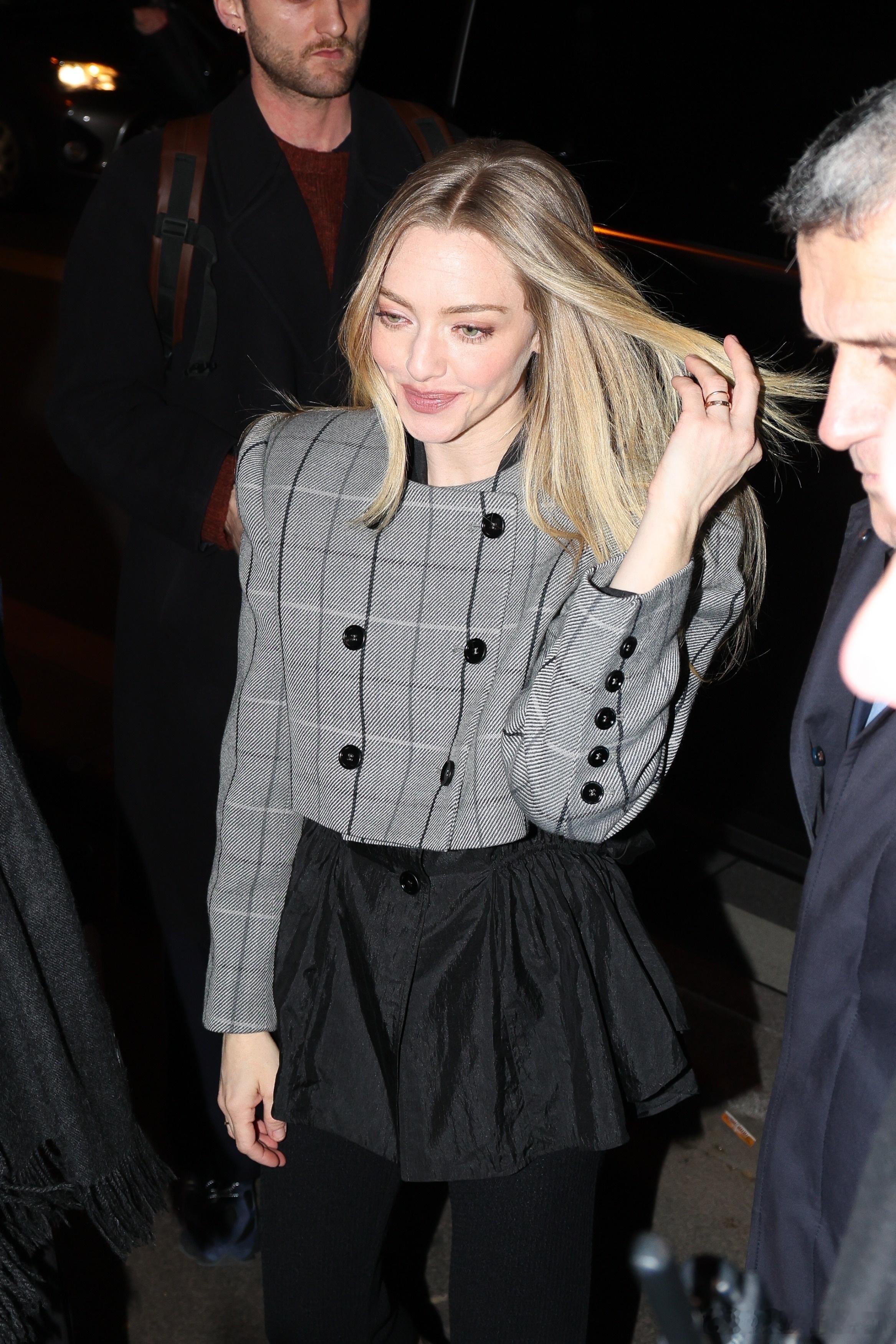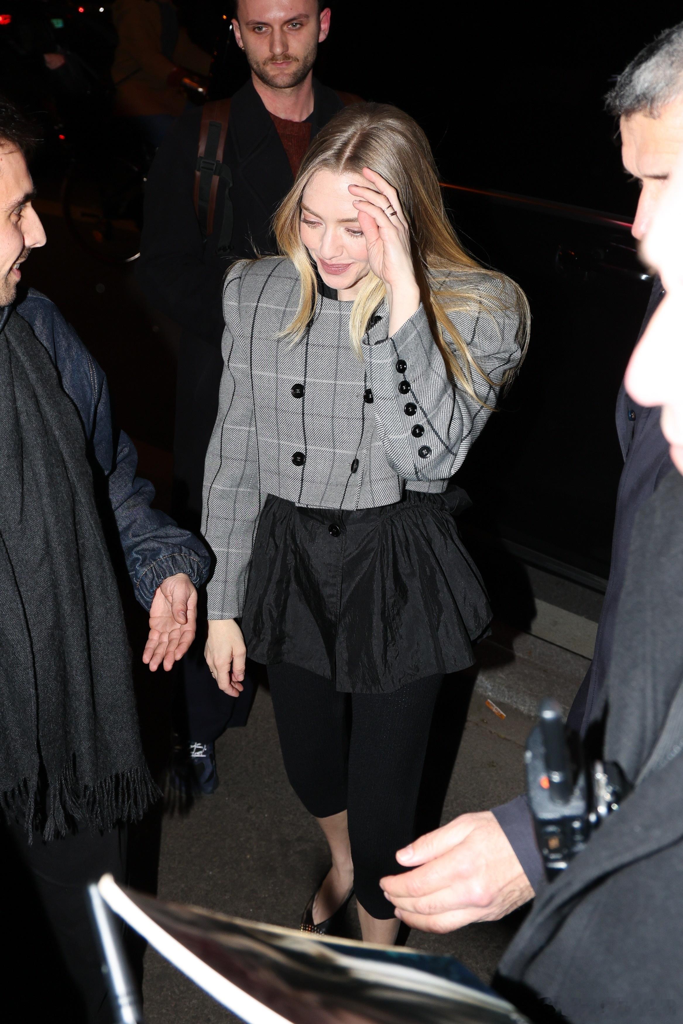 Amanda Seyfried阿曼达塞弗莱德在巴黎外出,前往出席《安·李的遗嘱》的法国首映礼,还收到了粉丝送的钩针小花束