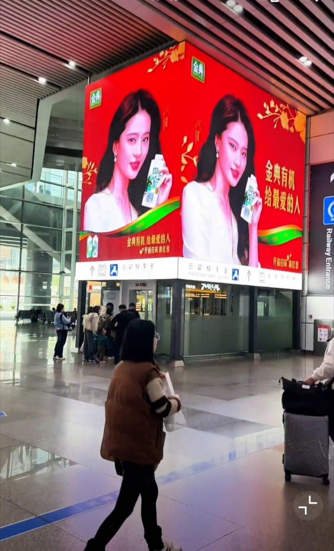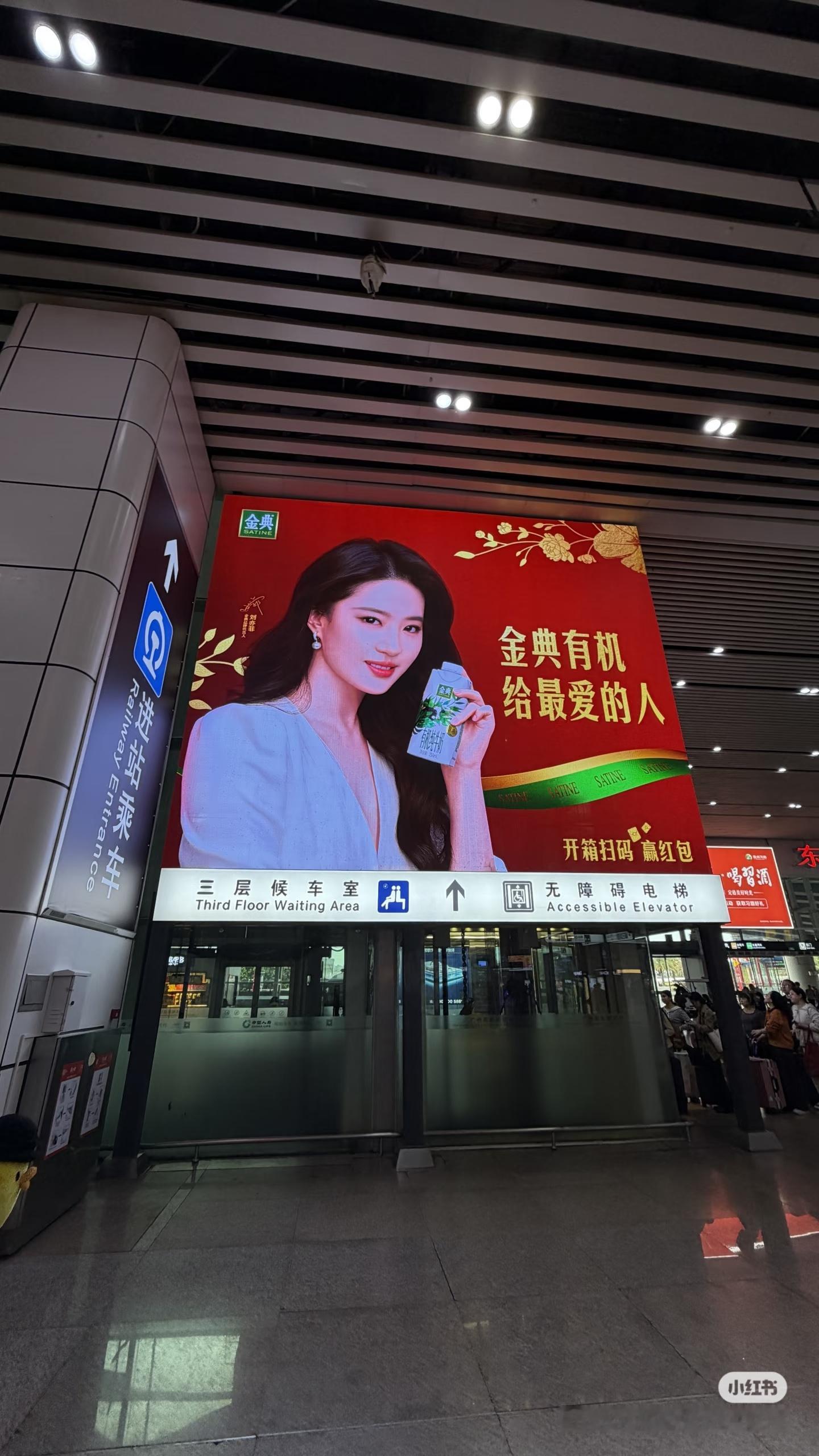 上海站,从进站开始到候车多个大屏让你无法忽视刘亦菲金典广告,拜年就送金典