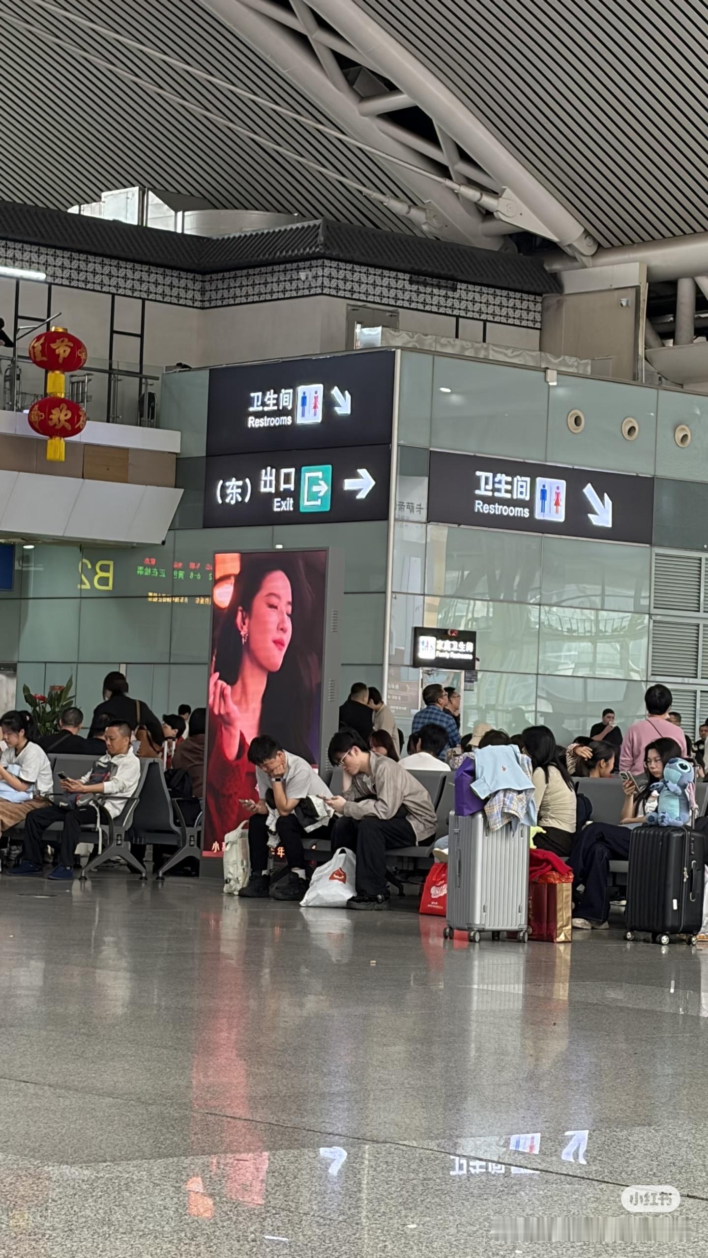广州南从进站到候车被刘亦菲硬广地广包围了