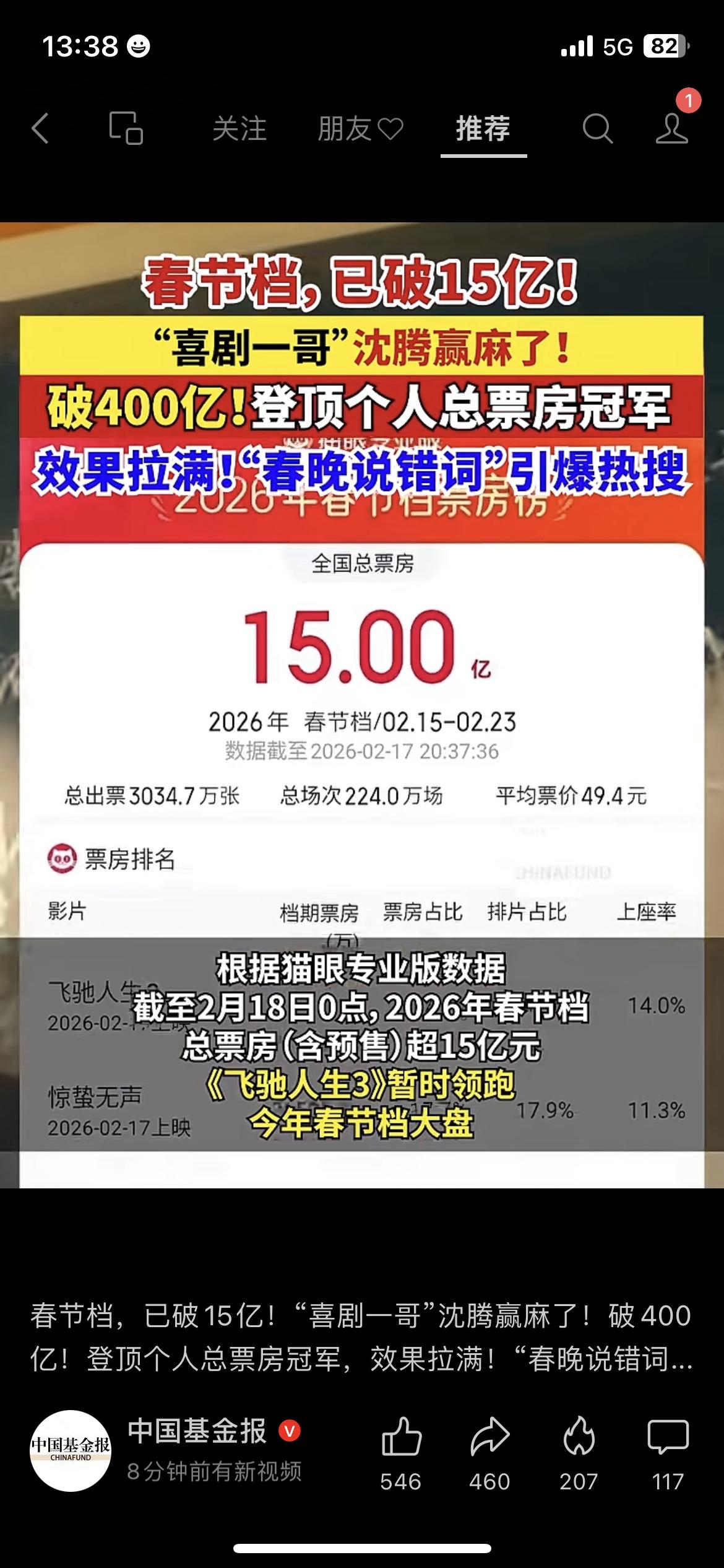春节档刚开跑就杀疯了! 截至2月18日0点,2026春节档总票房(含预售)破15亿,《飞驰人生3》暂时领跑,主演沈腾凭此片个人总票房破400亿,登顶中国影史票房冠军! 春晚口误爆热搜,春节档票房领跑,腾哥这波真的赢麻了! 你已经看了哪部春节档电影?评论区聊聊! 春节档电影 沈腾 飞驰人生3飞驰人生第三部 新年电影票房