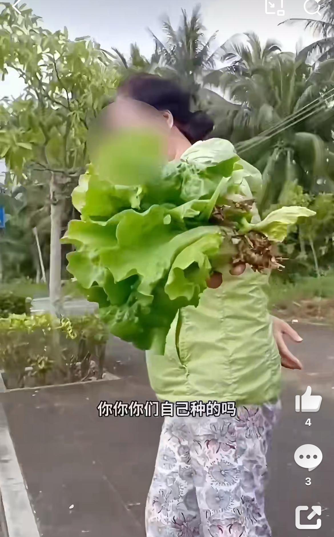 东北大妈海南偷生菜,被田主发现批评,冒充山东人企图蒙哄过关。 田主问:这是你种的吗? 大妈:是啊!自己种的。 田主:你们大陆来的,哪有地种? 大妈:我就问你几块钱,我给你钱。 田主:你们是哪里人? 大妈:我们山东人。 田主:怎么你们山东人喜欢到处弄? 大妈:我就看那个像芦荟,以为是野生的。 大妈:杀人不过头点地,你想怎么滴? 田主:你把菜放回去,我不要你的钱。 说罢,大妈乖乖把菜放回田里,骑着三轮电瓶车扬长而去。
