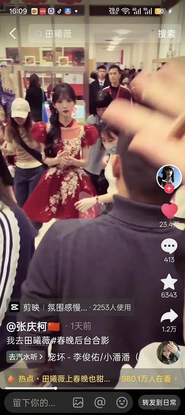 张天爱跟素人合影,胯真的好宽,大宅院似的
