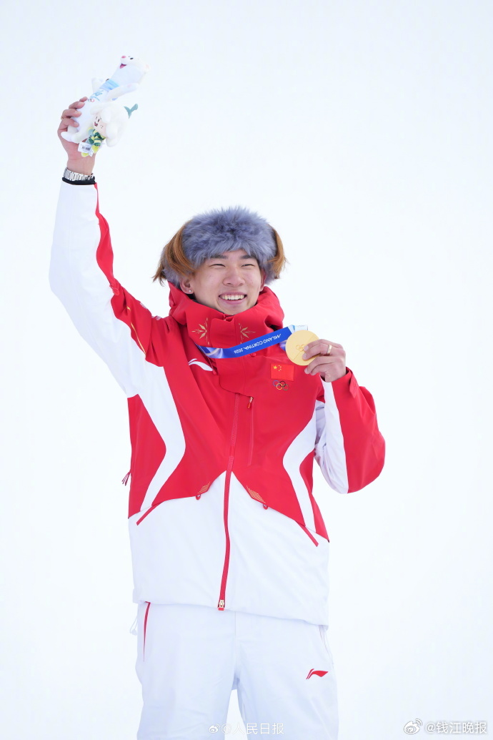 【#苏翊鸣幻视小栓子#】#苏翊鸣金牌# 苏翊鸣登上最高领奖台,造型酷似曾扮演过的《智取威虎山》里的小栓子。“怕你们撵不上!”如今,小栓子的豪言壮语又成真了!(人民日报)#徐梦桃金牌##苏翊鸣单板滑雪坡障技巧决赛##中国队米兰冬奥首金#