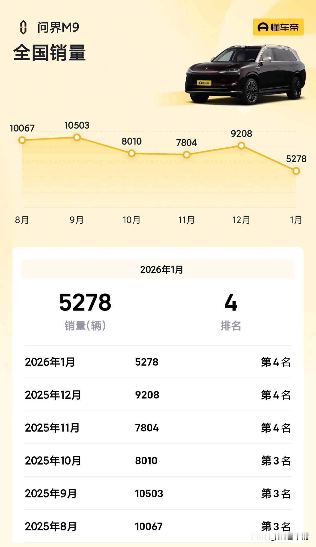 极氪9X连续三个月在销量上压制问界M9,独占50万级D级SUV车型销量榜首。 1月份的销量大家都下滑惨烈,2月春节月只会更惨烈,对比可能都没有太大意义。不过1月是极氪9X完整销售的第4个月,跳出了前期铺量的3个月,极氪9X的销量还是经受住了考验,说明订单池还是比较稳定的。 大家怎么看后续稳定月销后的极氪9X,到底能到达什么高度呢?