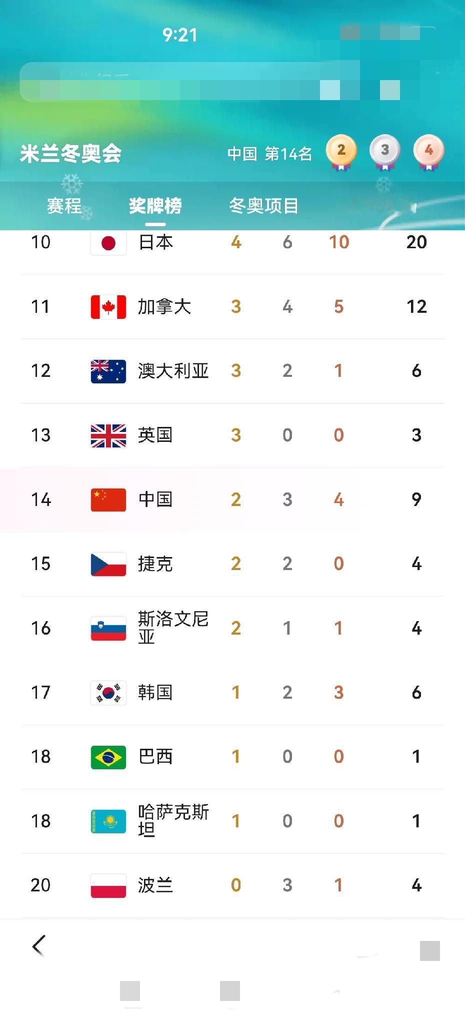 中国队一个晚上有两枚金牌入账,获得者分别是苏翊鸣和徐梦桃。 2月18日这一天,是中国队在意大利冬奥会上收获颇丰的一天,因为就在这一天的晚上,中国队相继获得两枚金牌。 这两枚金牌,先是苏翊鸣获得的单板滑雪男子坡面障碍技巧赛金牌,紧接着,中国队徐梦桃又获得了自由式滑雪女子空中技巧决赛冠军(卫冕),为中国奖牌榜再添一枚沉甸甸的金牌。 徐梦桃这枚金牌的获得,让中国奖牌榜再进两位,从第16位变成了第14位。 中国队加油!