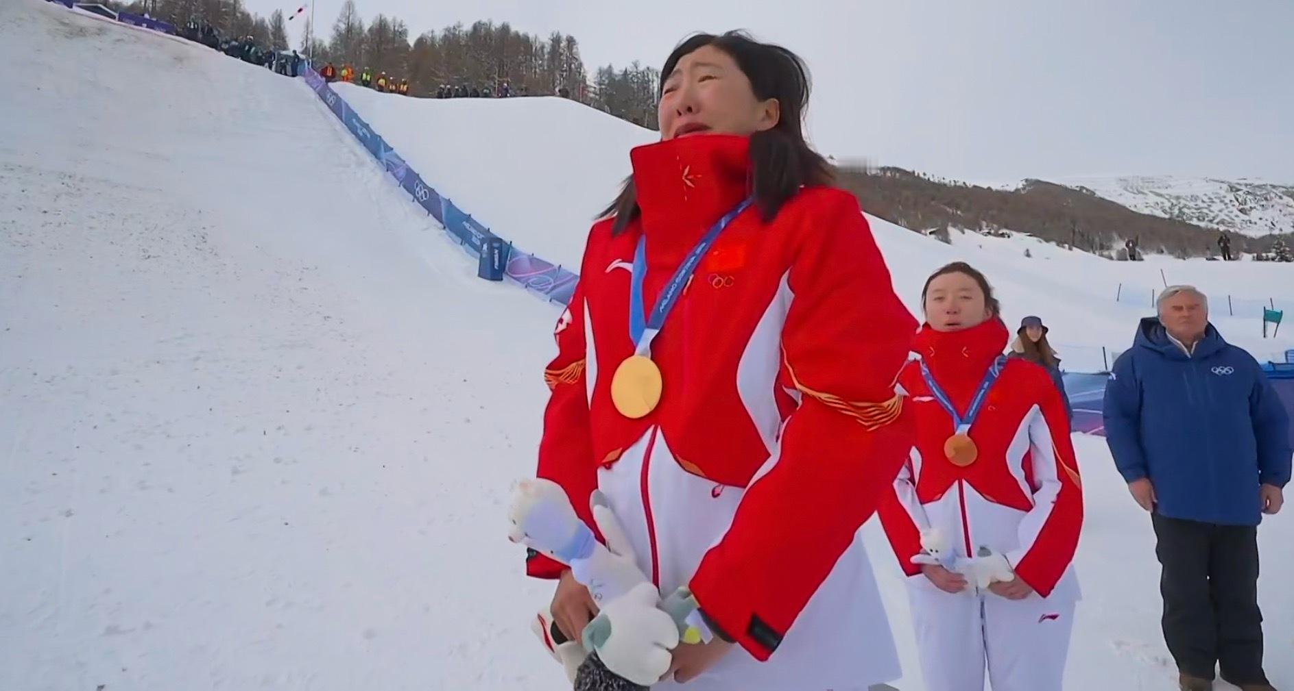 徐梦桃金牌自由式滑雪女子空中技巧决赛 国歌响起,徐梦桃哭了,只有五届奥运元老懂自己的艰辛!感谢徐梦桃的坚持,她成为自由式滑雪空中技巧冬奥史上首位连冠选手!