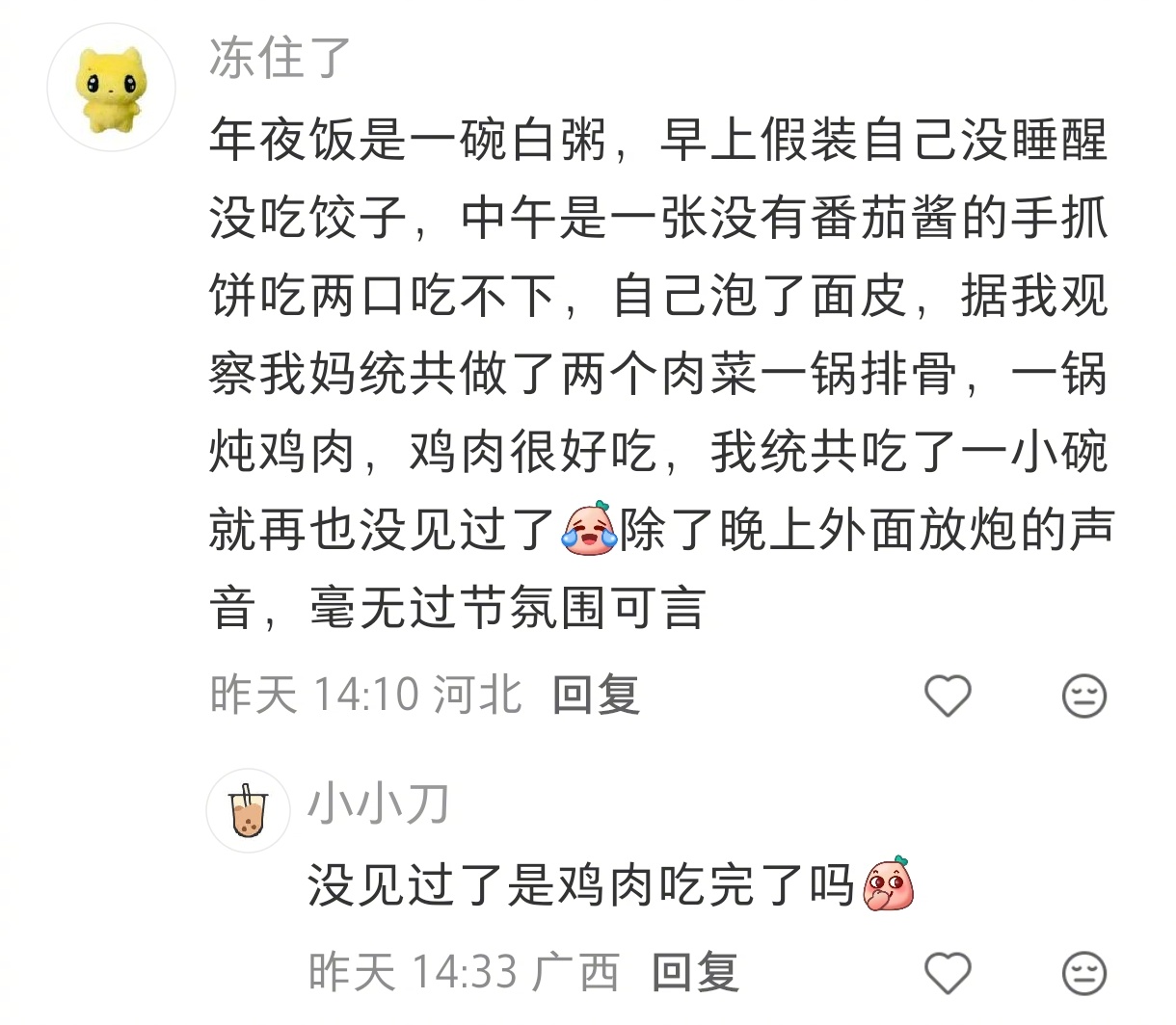 今年这顿年夜饭,吃得我心里堵得慌,一点年味儿都没有。本来一家人热热闹闹坐在一