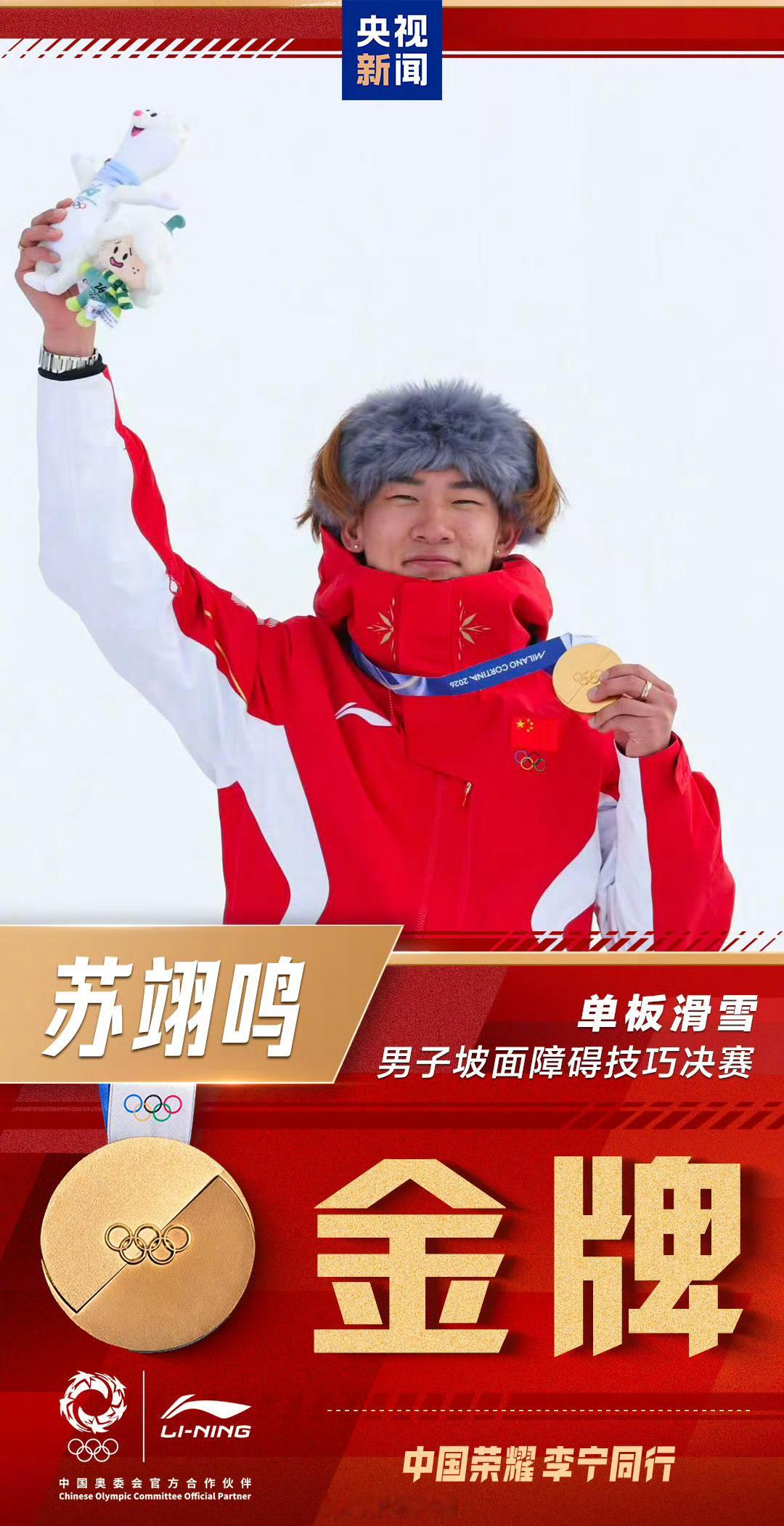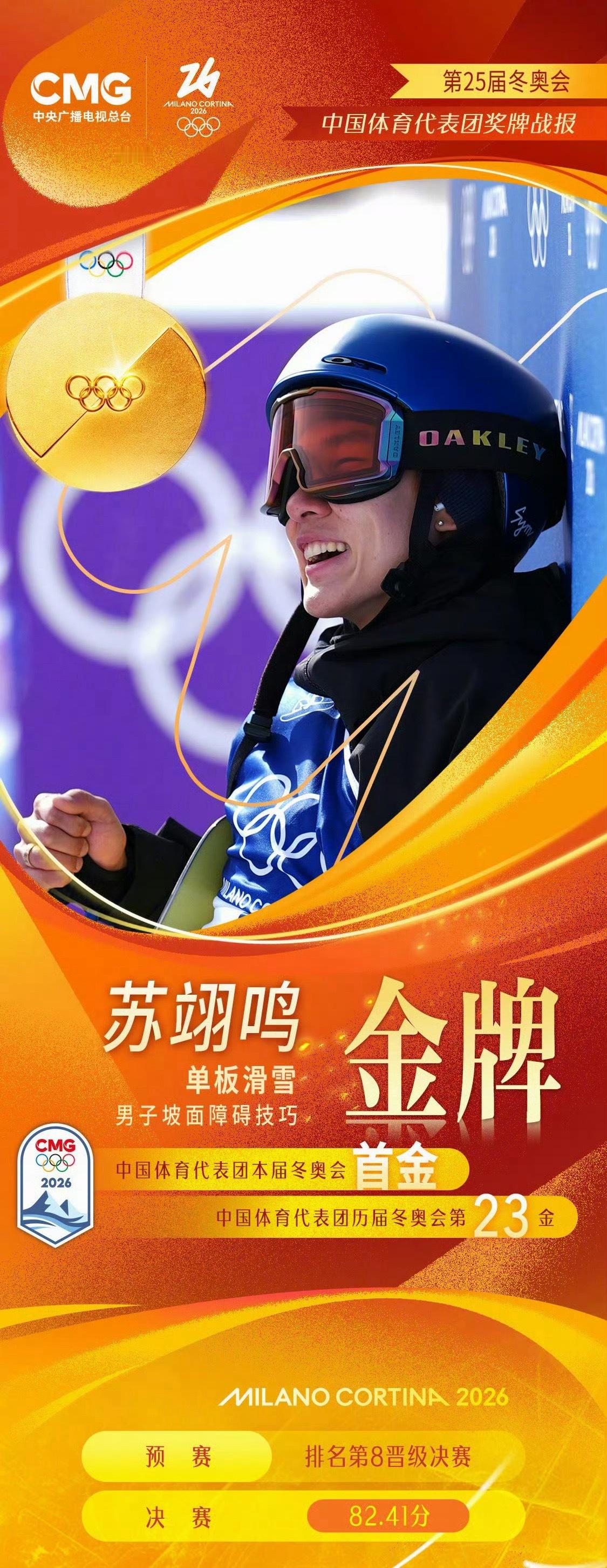 中国队赢了就是牛生日遇金牌,少年创历史!苏翊鸣在22岁生日当天,凭借稳定发挥与高难度动作,以82.41分强势摘得米兰冬奥会单板滑雪男子坡面障碍技巧金牌,为中国代表团拿下本届冬奥首金!