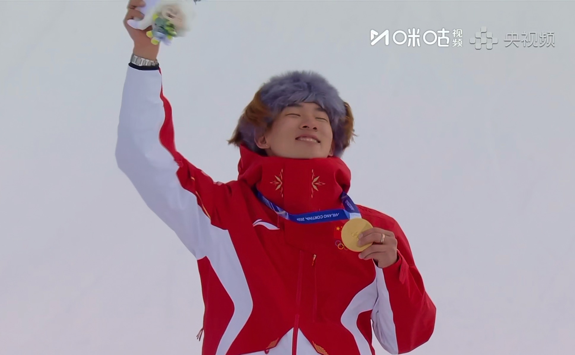 浪姐首位冬奥会卫冕冠军徐梦桃金牌 米兰冬奥赛场,徐梦桃以完美一跳得到112.90