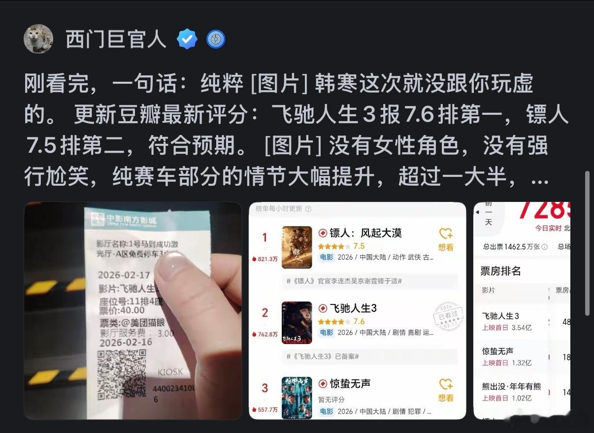 沈腾尹正回应如何维持兄弟感情韩寒天赋觉醒!《飞驰人生3》不玩虚的,无多余剧情专注赛车。全员演技在线,燃点密集,被知乎网友预测票房或将冲击五十亿!
