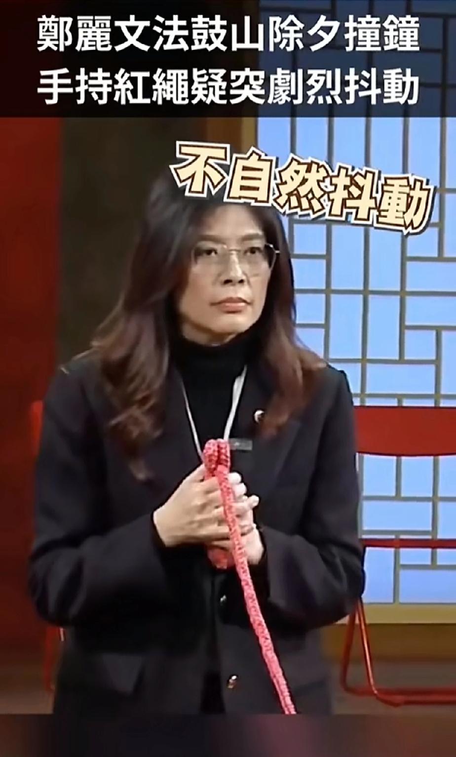 红绳突然抖动,暗示了什么?是与神灵意志相通吗? 郑丽文除夕撞钟,手持红绳剧烈抖动两次,难道是神仙显灵,寓意赞同郑丽文的国民党反台独,拯救台湾民众于水深火热之中,将其作为天选之人? 而民进党除夕进行每年一次的抽运势签,却抽出了个下下签。签文意思显示当局误判形势,如果继续一意孤行,将会造成错误的结果。 台湾回归祖国,是历史的必然,是大势所趋,是任何人都无法阻挡的。