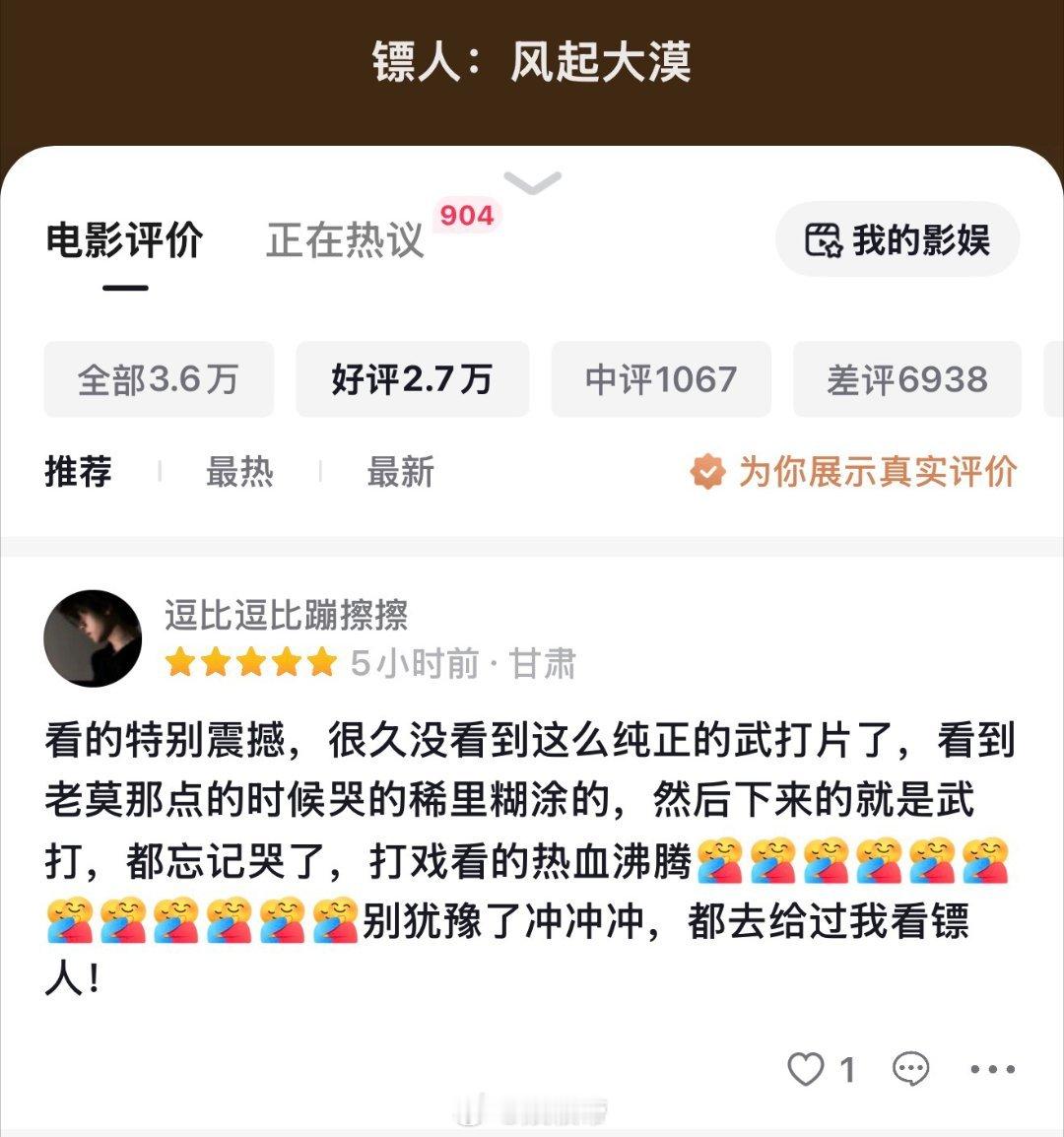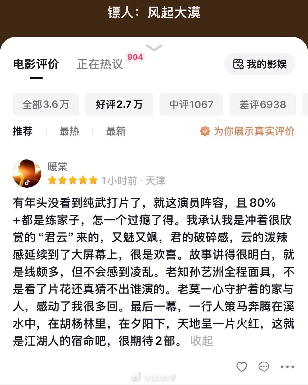 镖人自来水的含金量还在上升春节档看完一圈,还是《镖人:风起大漠》最顶!袁和平硬核武打,拳拳到肉不玩虚的,动作戏看得人全程热血沸腾,真正的武侠质感回来了。