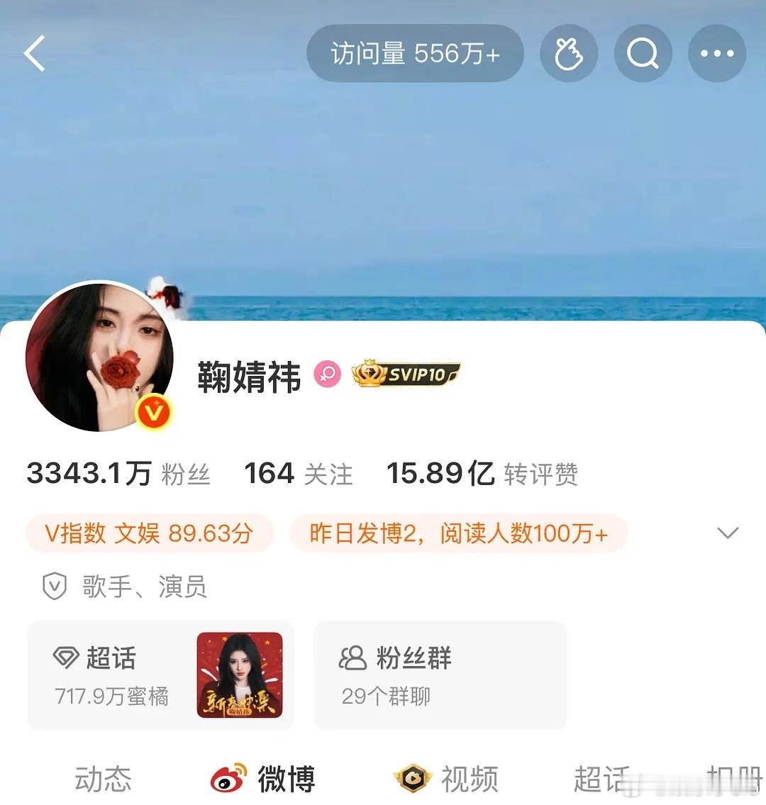 鞠婧祎主页访问量五百万了,小鞠没上春晚没有活动,两年无播剧,顶流花实锤啦感觉粉丝挺活跃。她就算不露面,粉丝会自己找乐子,互动很频繁,我看到的是抖快