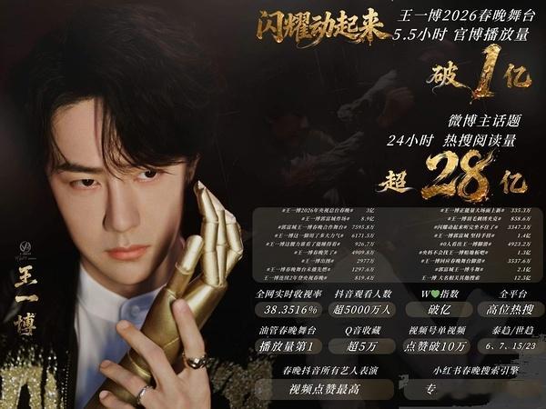 春晚舞台官博视频播放量拉表,只有郭富城王一博的舞台破亿了冷知识:春晚一共就两个破亿舞台,都是王一博的,一个2025年王一博的《我可以》,一个2026年王一博的《闪耀动起来》。