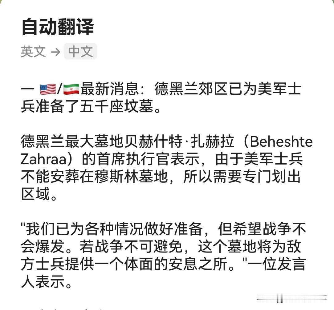 伊朗方面已在首都德黑兰郊区为美军士兵准备了五千座坟墓。