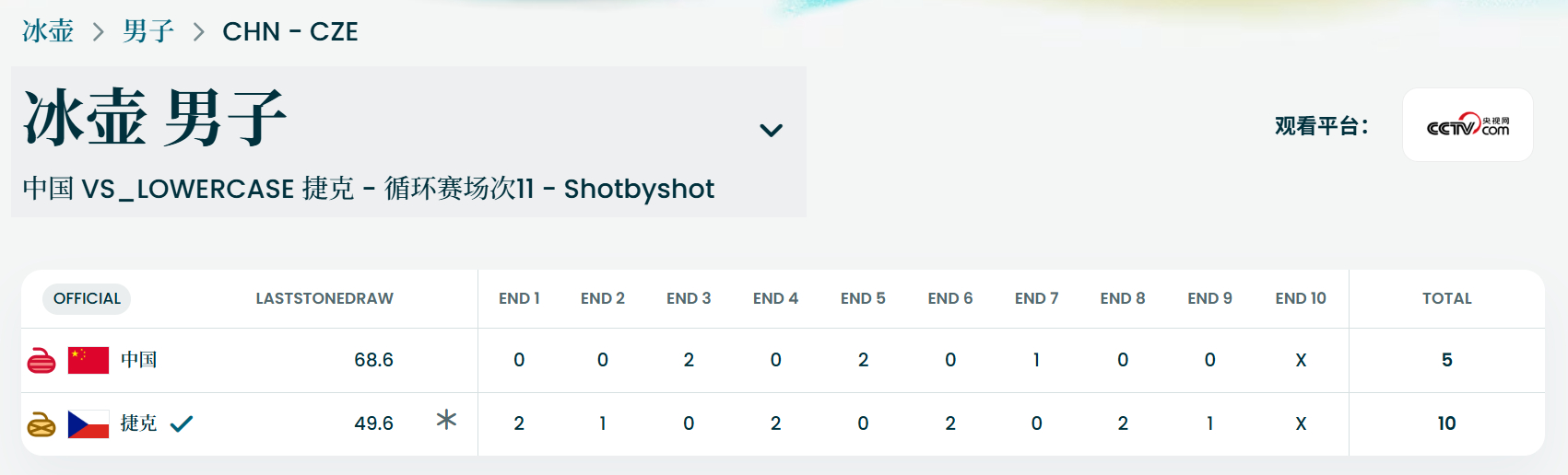 #中国冰壶男队5比10不敌捷克队#