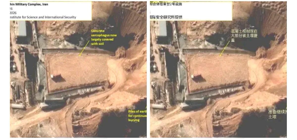 伊朗伊斯兰革命卫队海军在霍尔木兹海峡继续进行代号为“智能管控霍尔木兹海峡”的军事演习。演习已进入第二天。演习内容包括导弹发射、摧毁敌舰、布雷以及拦截油轮等。 伊朗首次放出苏莱曼尼级双体导弹舰上的大尺寸垂发发射舰空导弹的画面, 该舰配备大尺寸和小尺寸两种垂发。 伊朗确实在进行谈判,但其幕后的实际行动表明,他们深知美国(或以色列)发动袭击已是板上钉钉的事情。具体行动包括: - 掩埋伊斯法罕隧道入口。 - 掩埋“塔莱甘-2”基地(图一图二示)。 - 将大量反舰导弹转移至波斯湾沿岸和阿布穆萨岛、通布岛。 - 几乎每天进行导弹试射与防空系统测试。 - 加固弹道导弹基地入口,并将部分设施转移至东部基地。 - 取消了伊朗最高领袖哈梅内伊原定的大部分公开活动。 任何严肃的观察者都能看清这一切。 伊朗正在用土壤将“塔勒坎-2”核设施新建的混凝土石棺完全掩埋,以保护其免受袭击。 该地点被怀疑是一个用于高爆试验的硬化结构,并且在 2000 年代初伊朗执行核武器计划“AMAD”计划期间保持活跃。