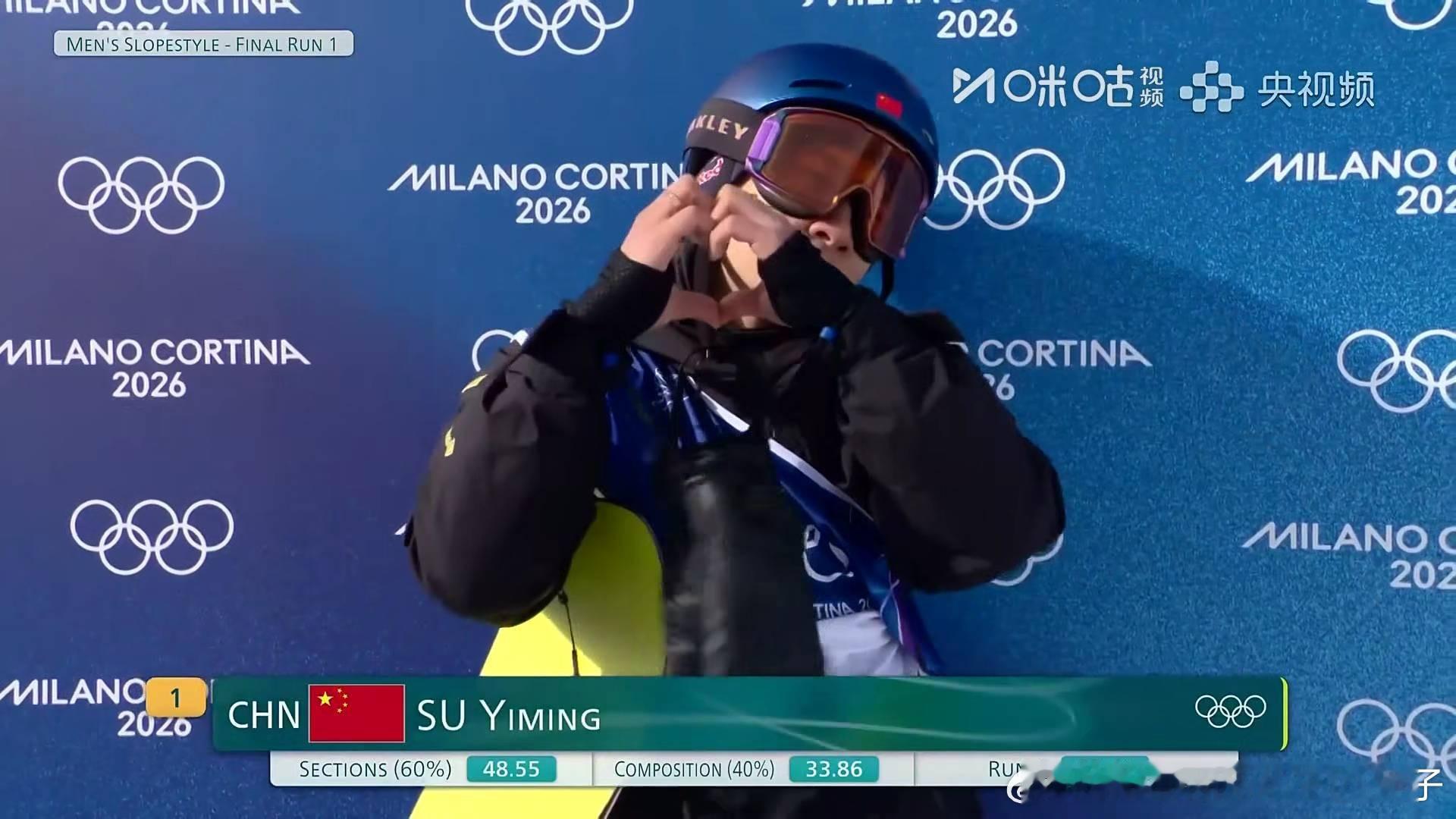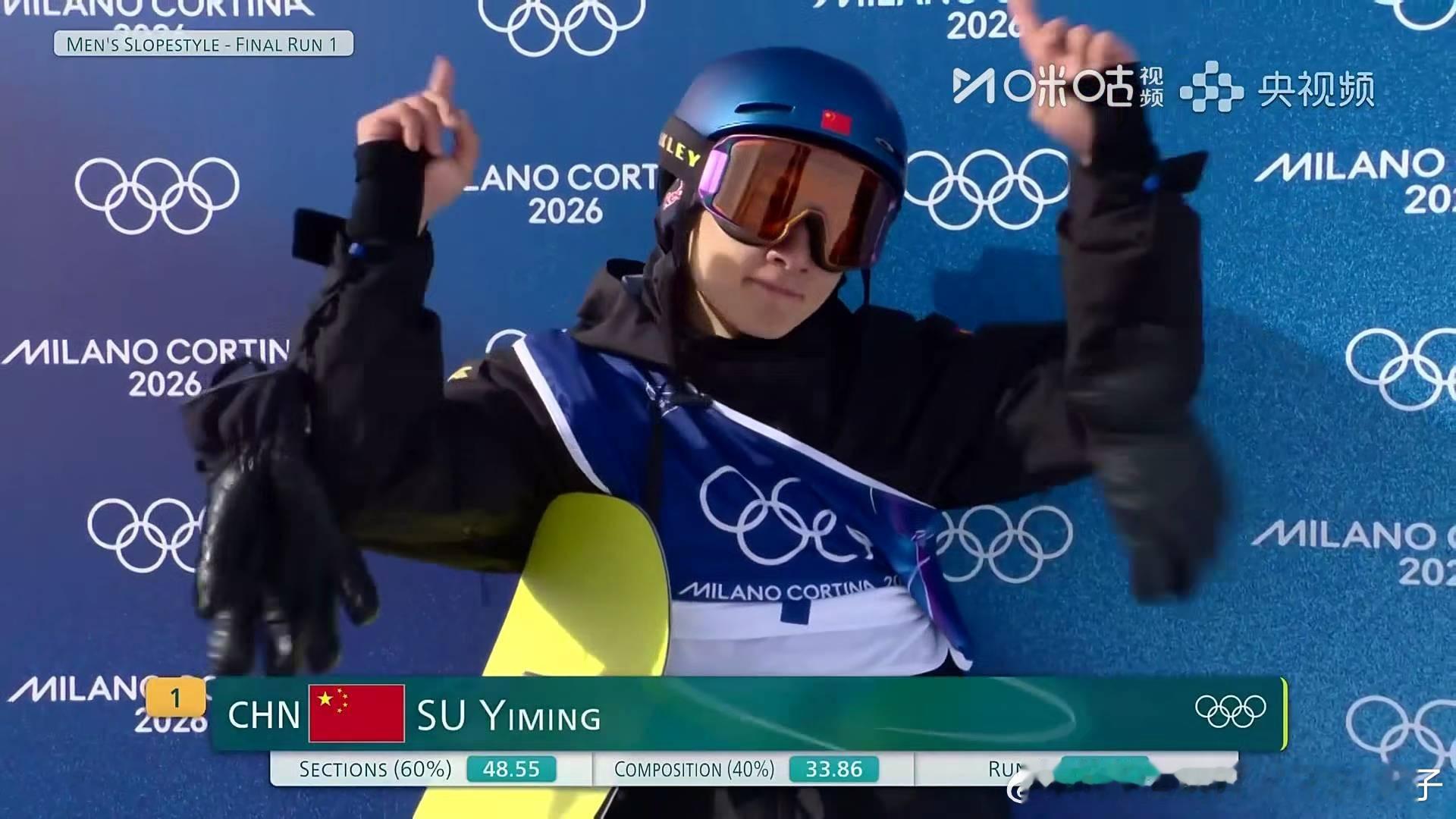 苏翊鸣第一滑82.41分2026年米兰冬奥会单板滑雪男子坡面障碍技巧决赛:苏翊鸣第一轮得分82.41分☝🏻️☝🏻️打分咋那么长啊