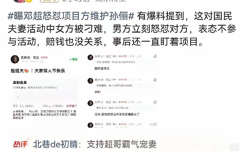 娱乐圈大瓜炸场! 2月18日深夜,邓超孙俪直接冲上热搜顶流,全网都在嗑这对国民夫妻的硬核糖。 有瓜主爆料,孙俪在活动中被项目方刁难,进退两难特别委屈。邓超当场就怒了,直接打电话放狠话:不参加了,赔多少钱都不在乎!事后还一直盯着项目,就怕老婆再受一点气。 关键词一扒,网友全锁定是他俩,毕竟这种护妻气场,除了邓超没谁了。平时看着搞笑爱玩,关键时刻比谁都靠谱,这才是真男人。 好的感情从不是表面甜言蜜语,而是有人愿意站出来为你撑腰。邓超这波操作,直接把安全感拉满,也难怪大家一直看好他们。 不炒作不做作,用行动护着爱人,这样的夫妻在娱乐圈真的太圈粉。