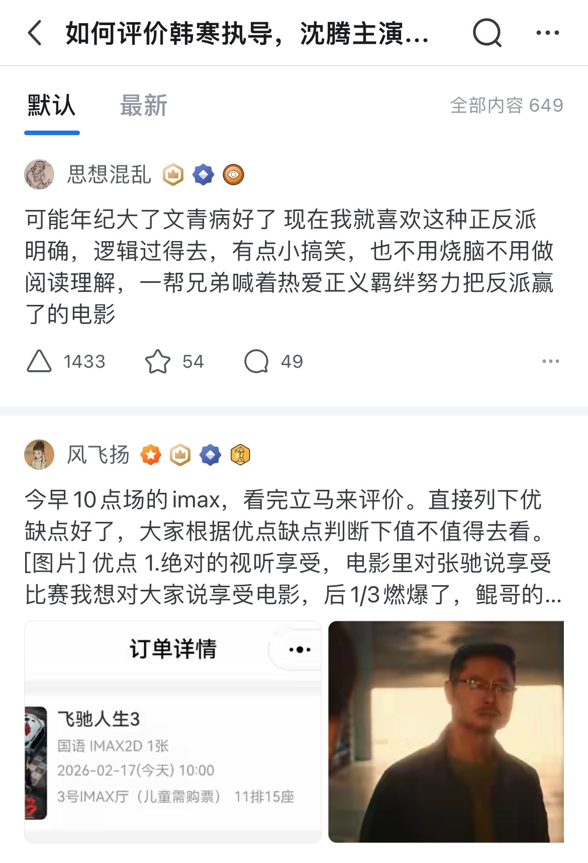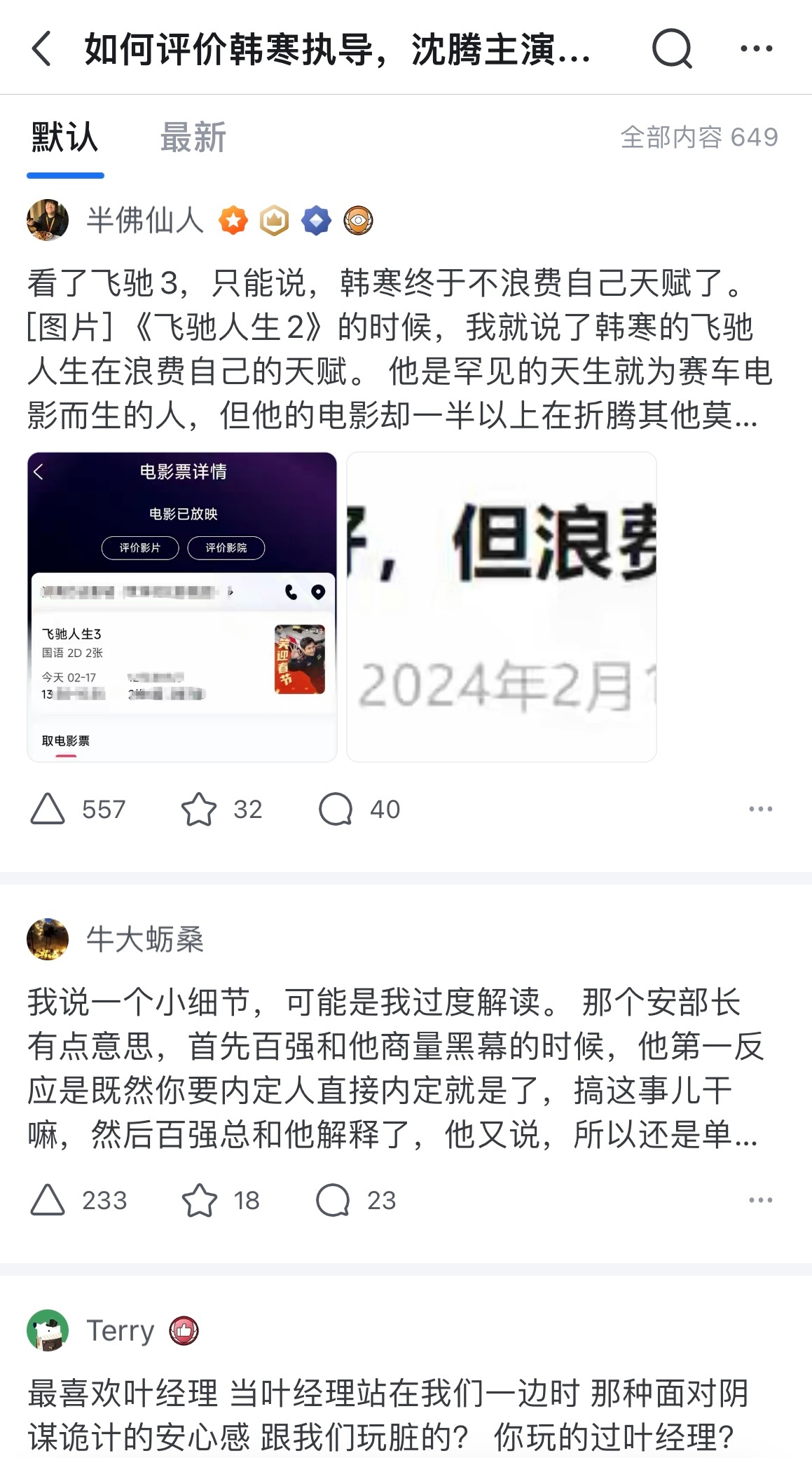沈腾尹正回应如何维持兄弟感情知乎网友评价《飞驰人生3》:文青病好了,就爱这种爽片!正反派明确,逻辑在线,不用烧脑不用做阅读理解。一帮兄弟喊着热爱正义羁绊,热血翻盘燃到飞起。沈腾表演松弛,叶经理护驾时的安全感拉满,看完只想二刷!