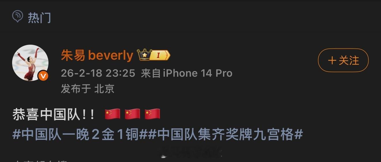 朱易发合影祝贺苏翊鸣朱 易:Happy Su day!!!苏翊鸣:Love you babe❤️