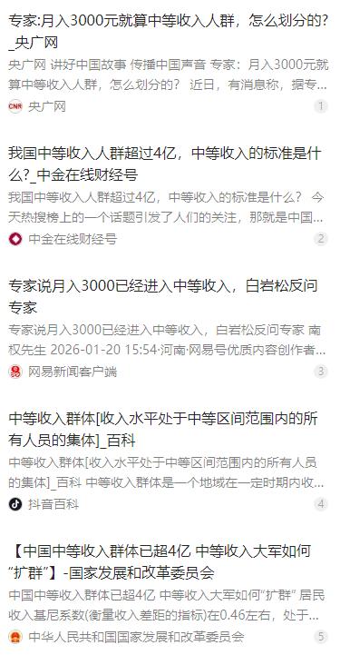 专家说月入3000已经进入中等收入,白岩松反问专家,如果月入3000 就算中等收入,我国中等收入人群已达 4亿,为什么好多人都拒绝承认自己已经进入中等收入人群?专家略微思考后,回答因为他们大部分刚过门槛,还是比较脆弱,不太敢消费。 麻烦看官老爷们右上角点击一下“关注”,既方便您进行讨论和分享,又能给您带来不一样的参与感,感谢您的支持! 月入 3000 元即迈入中等收入群体,这一说法曾引发全网热议,相关测算显示我国该群体规模已达 4 亿人,可现实里绝大多数达到这一收入标准的人,都不愿承认自己是中等收入人群,这一反差成了当下民生经济里的一个真实写照。 这一收入标准并非凭空而来,国家统计局对中等收入群体的界定,是以三口之家年收入 10 万到 50 万元为核心口径,折算下来单人月入 3000 元左右便触达了门槛,这也是 4 亿人群数据的测算依据,并非单一的个人月收入标准。 有专家对此作出解读,称这些被划入中等收入的人群,大多只是刚刚迈过标准门槛,属于中等收入群体里的基础层,经济状况本就比较脆弱,面对生活里的各类变数抗风险能力弱,这也是他们不敢坦然认可这一身份的核心原因。 统计数字上的中等收入,和普通人真实的生活体验之间,存在着一道难以忽视的鸿沟。统计口径是统一的,可放在不同的生活场景里,3000 元月收入的实际购买力,能拉开天差地别的差距,这也是体感落差的重要来源。 3000 元在三四线城市或者县城,扣除基础生活开支后还能略有结余,可到了北上广深这类一线城市,连偏远区域的单间房租都未必能覆盖,更别说日常的饮食、交通和其他消费,地域发展的差异让同一收入有了不同的生活质量。 除了地域差异,教育、医疗、养老这三座大山,更是压在这部分人群心头的重石。哪怕月入超过 3000,甚至达到 8000 元的水平,面对孩子的教育支出、家人的医疗储备、长辈的养老规划,依然不敢有丝毫松懈,消费更是要反复掂量。 身边有位月入 8000 元的朋友,收入远超 3000 元的中等收入门槛,可生活里依旧是精打细算的状态。房租占了收入的三成,每月还要固定存下一笔钱应对家人的医疗和养老,日常消费只选刚需,哪怕是几百元的休闲支出都要犹豫再三。 对他而言,收入的增长只是让基础生活有了保障,却远没达到能随心消费的程度。所谓的消费自由,不仅需要稳定的收入做支撑,更需要足够的储蓄、完善的保障体系做后盾,这些都是当下不少中等收入人群所欠缺的。 过去十年间,随着我国经济的稳步发展、城镇化进程的加快,以及国民教育水平的不断提升,中等收入群体实现了快速的扩容,4 亿的规模也让我国拥有了全球最大的中等收入群体,这是经济发展的必然成果。 但这份成果背后,也藏着中等收入群体的结构性问题,收入结构不均的现象尤为明显。不少人虽进入了中等收入行列,却属于工资性收入单一的群体,缺乏财产性收入等其他收入来源,收入增长的空间也相对有限。 同时,各类生活成本的持续上涨,也让中等收入群体的获得感打了折扣。房价的居高不下、教育和医疗资源的市场化支出,都让这部分人群不得不保持高储蓄的状态,不敢消费、不愿消费成了普遍的心理,消费信心也难以有效提振。 中等收入群体的消费行为和心理状态,其实也是当下我国社会发展阶段的真实折射。从规模扩容到质量提升,让中等收入群体真正拥有稳定的生活、充足的保障、敢消费的底气,才是中等收入群体建设的核心方向。 让统计上的中等收入,真正变成老百姓体感里的中等生活,不仅需要稳步提高收入水平,更要完善社会保障体系,降低教育、医疗、养老等方面的生活成本,让每一个迈入中等收入门槛的人,都能坦然认可自己的身份,拥有实实在在的幸福感。