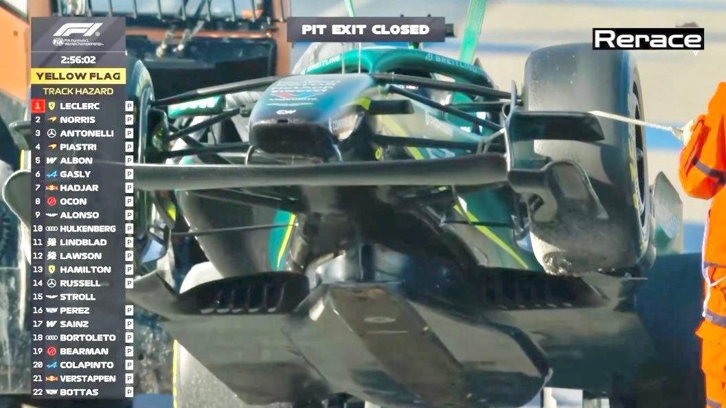 稍早前斯托尔赛车spin陷入沙石区…看到一丝底板F1赛车2026F1季前测试