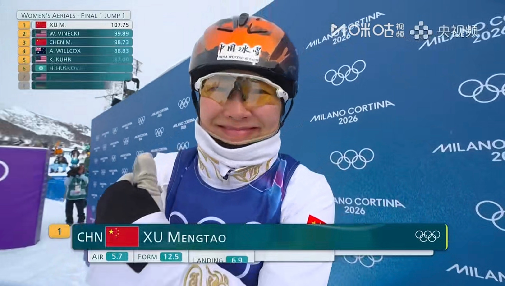 米兰冬奥会自由式滑雪女子空中技巧决赛第一跳,第一跳107.75分