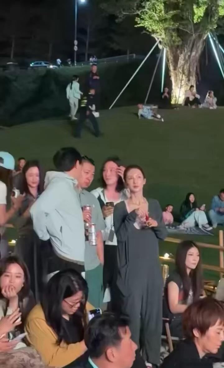 张天爱跟素人合影,胯真的好宽,大宅院似的
