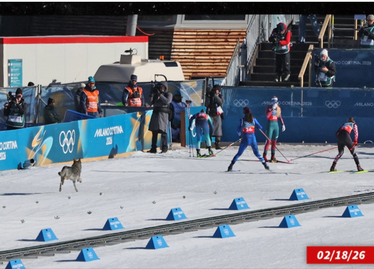 周三,一只神秘的狗在女子团体短距离资格赛期间冲上了越野滑雪赛道。