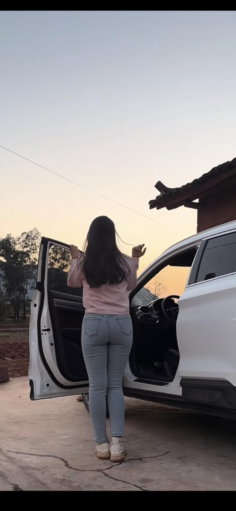 夕阳下的车旁,温柔地挥手告别,期待下一次的相遇。