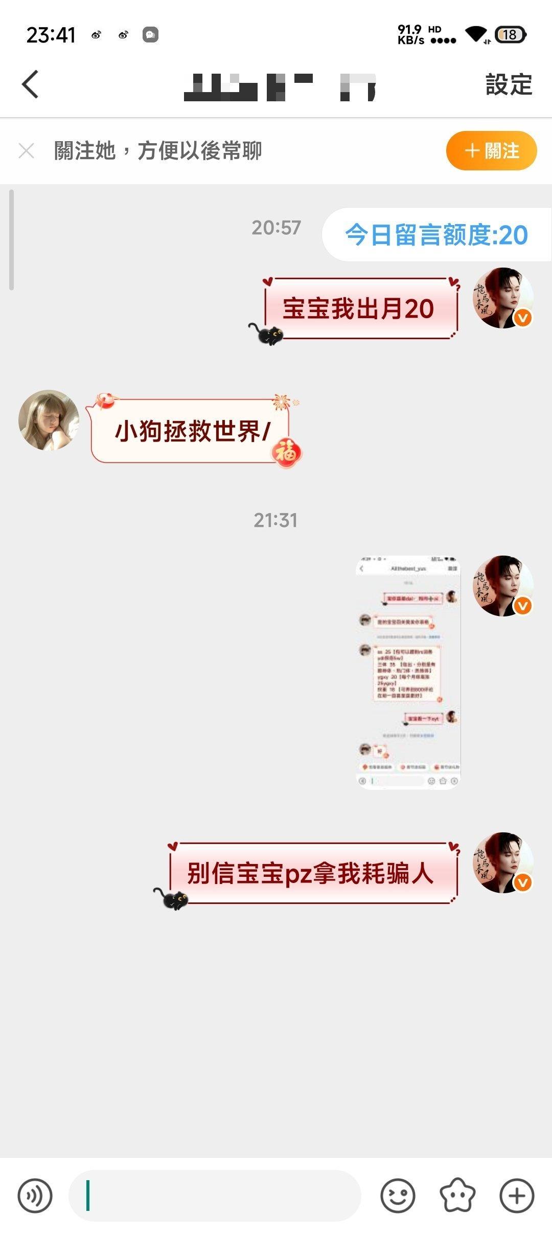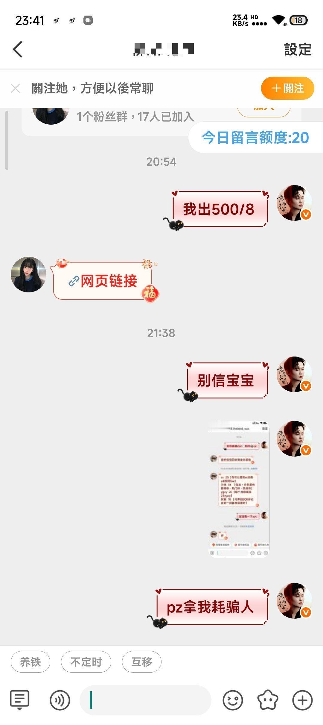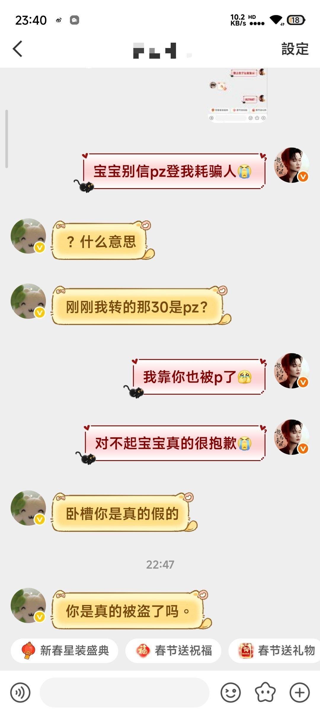 二手超话二手超话 壁垒:Allthebest_yus的主页 帮忙咔一下谢谢你们 你们好我是此耗耗主2.18晚7点多我发了一条在此ch的帖子问代🐑,之后他gz我了我就去问了下➕回g他把➕表发我了我找他要了xyt发了一张特别糊水印都看不起的图我没多想就信了。随后我找他要skm我转过去了(左上角时间是在19:20)随后他把🐴发过来让我sao我sao完也把yzm发过去了他登上了我就没咋管了他ip是在郑州我ip在浙江,我先证明一下我不是pz!!! 后面我出去了就没咋看手机,九点多的时候发现有微博消息点开一看越看越不对劲,发现他在用我耗骗人,吓得我马上取消denglu权限了后面之后找他们解释,有些被我及时止损了还有的宝宝被p了我目前知道的两个一个被pian35🥕一个被pian30🥕,他还把我和他的聊天记录全清完并且互取,进行一系列的zp我估计聊天记录全没的估计都已经被pian了(应该是一jiaoyi完就清空聊天记录)真的很对不起(我当时fu完的时候问他v他说🥚太多pf了) 不仅把我在此ch里的帖全清了还把我的博给编辑设置仅自己可见我给他发消息也不理我但是我也不知道他赞我微博几个意思 (前面几张截图有是因为我当时不太放心就截了几个发朋友了结果成了我自证自己不是骗子的图)pz替我们挡霉运替我们挡灾!祝大家新年快乐万事顺利