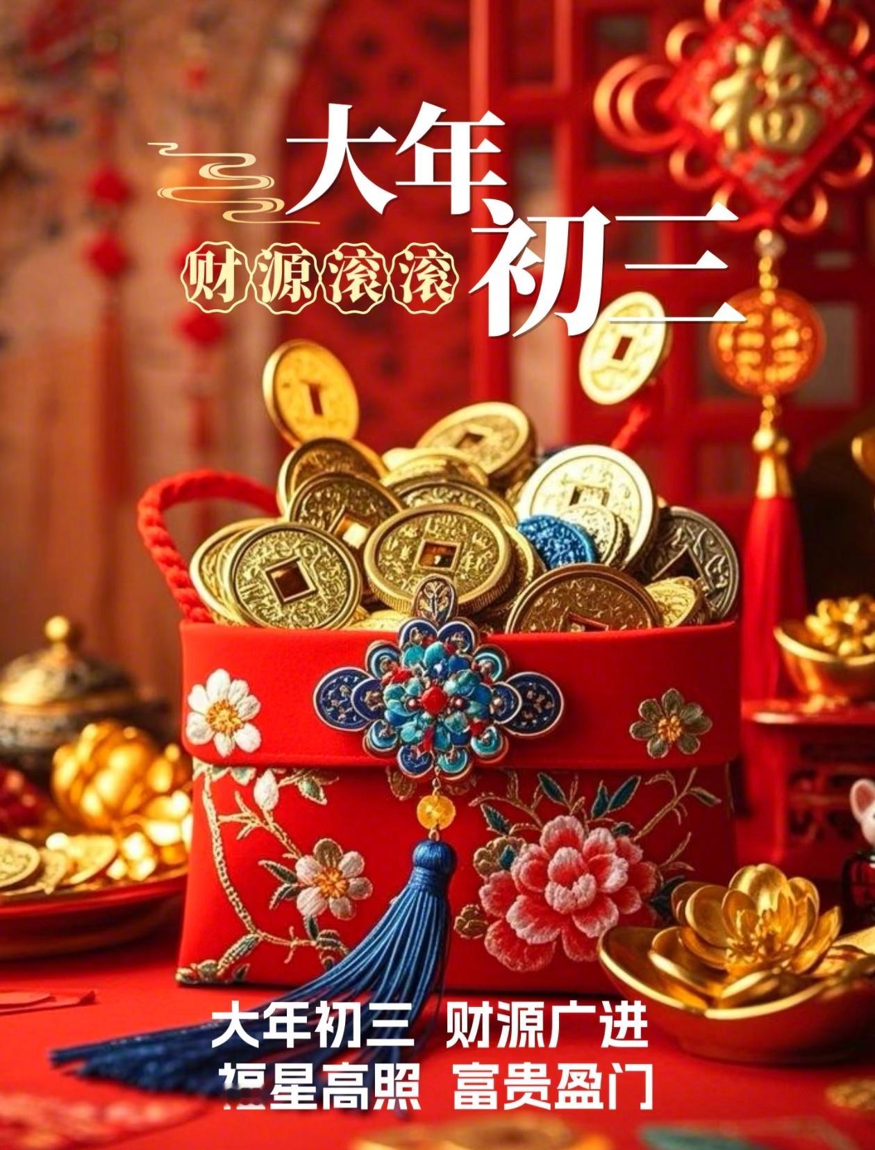 🧧大年初三,福满门,吉祥如意伴身旁。祝你初三好运来,梦想成真,身体健康,事事顺心,新的一年,步步高升,生活精彩!