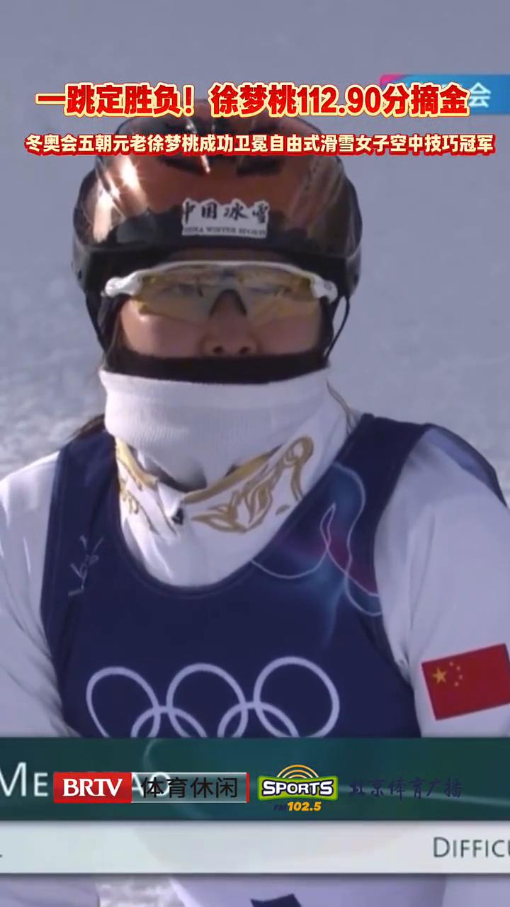 一跳定胜负!徐梦桃112.90分摘金会。 冬奥会五朝元老徐梦桃成功卫冕自由式滑雪女子空中技巧冠军。 接下来登场的是徐梦桃,徐梦桃第五次冬奥会比赛,北京冬奥会这个项目的冠军得主,一四年索契冬奥会的银牌得主,杰中奥会。英国人向我们最后一跳徐梦桃出发,没有问题,看奥迪漂亮。