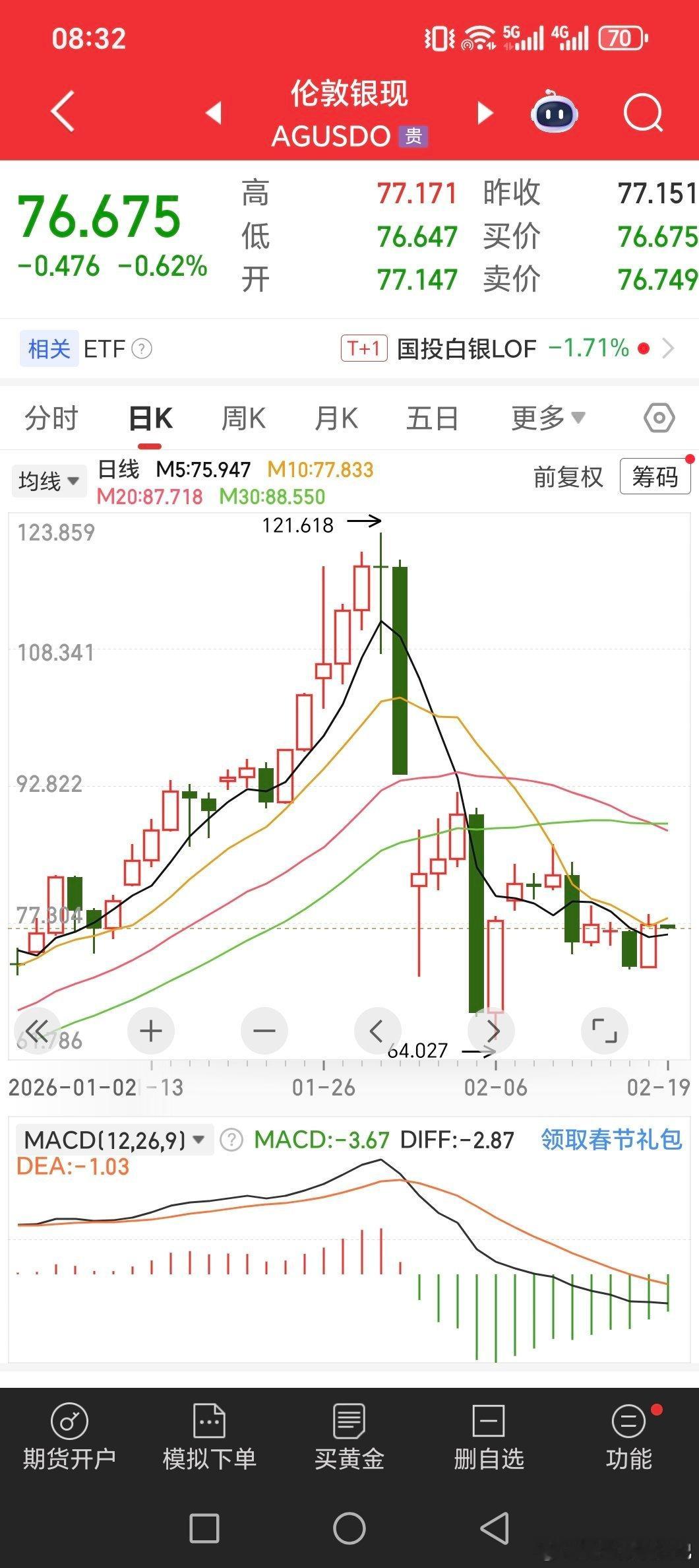 黄金白银基本修复了前天的大跌了!!!没几天就开盘了,实物类黄金稳一些