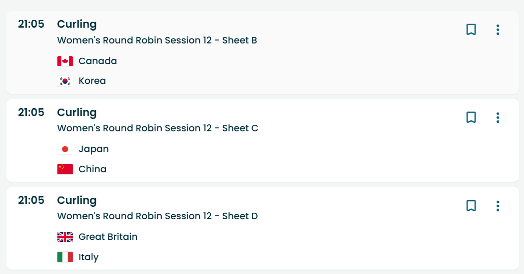今天16点场次和21点场次都有中国队,中国队最后两场球了,壶男对德国,壶女对日本