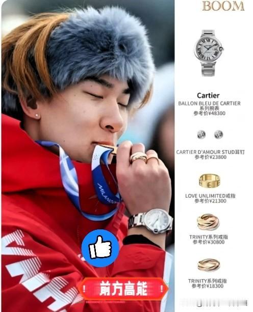 苏翊鸣领奖时拿着卡地亚的戒指、手表、耳钉,一下子吸引了大家的目光,本以为是他自己