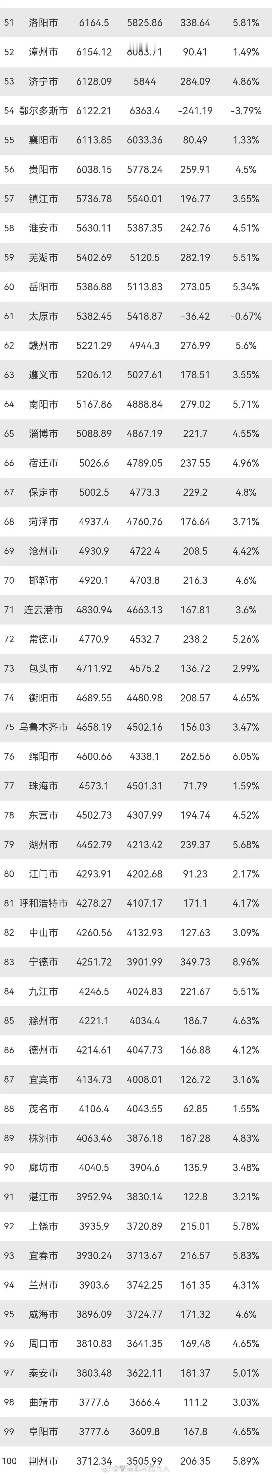 各地统计局统计的2025年中国城市top100 GDP汇总。看看你的家乡是否在其中。