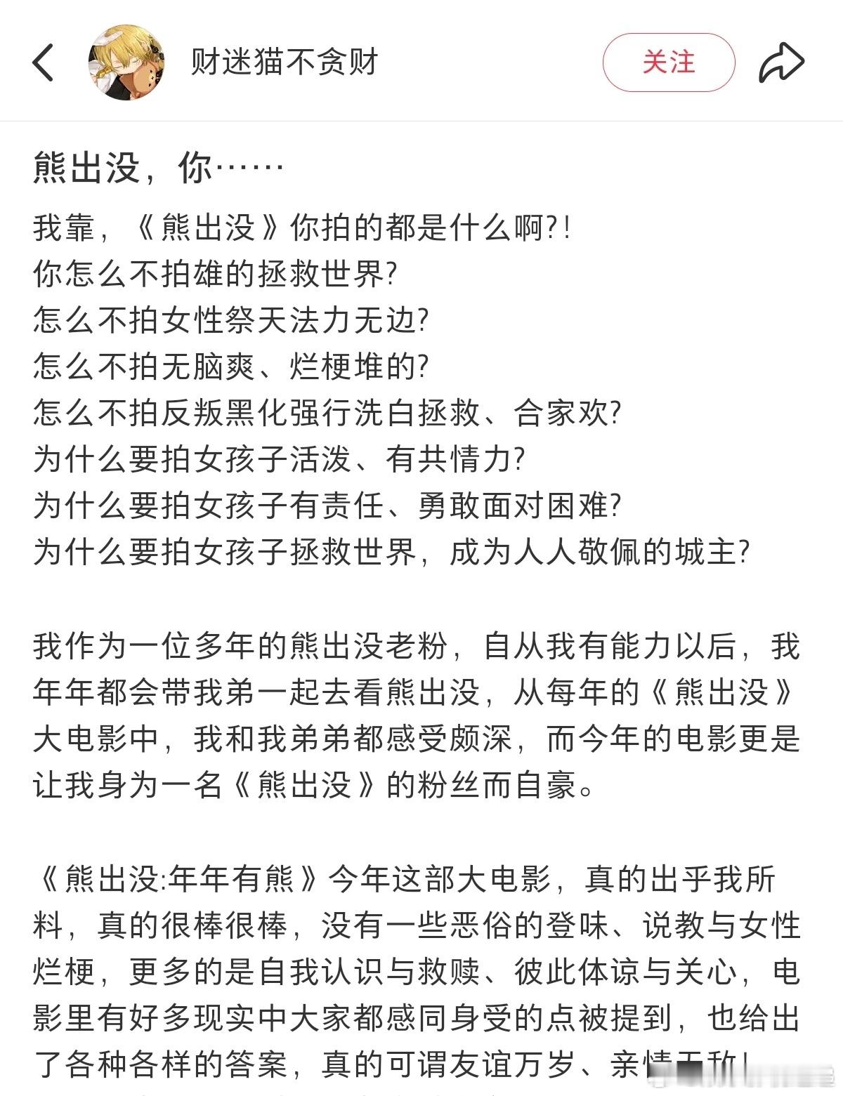 有这么立体的女性形象进入春节档 熊出没里的女性角色太丰富了吧,不是工具人不是花瓶,是活生生的人,春节档需要更多这样的女性形象。