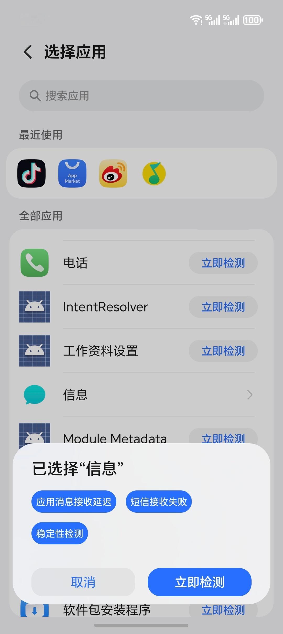 部分应用已经做了一些按钮选择,选择后可以针对性检测修复
