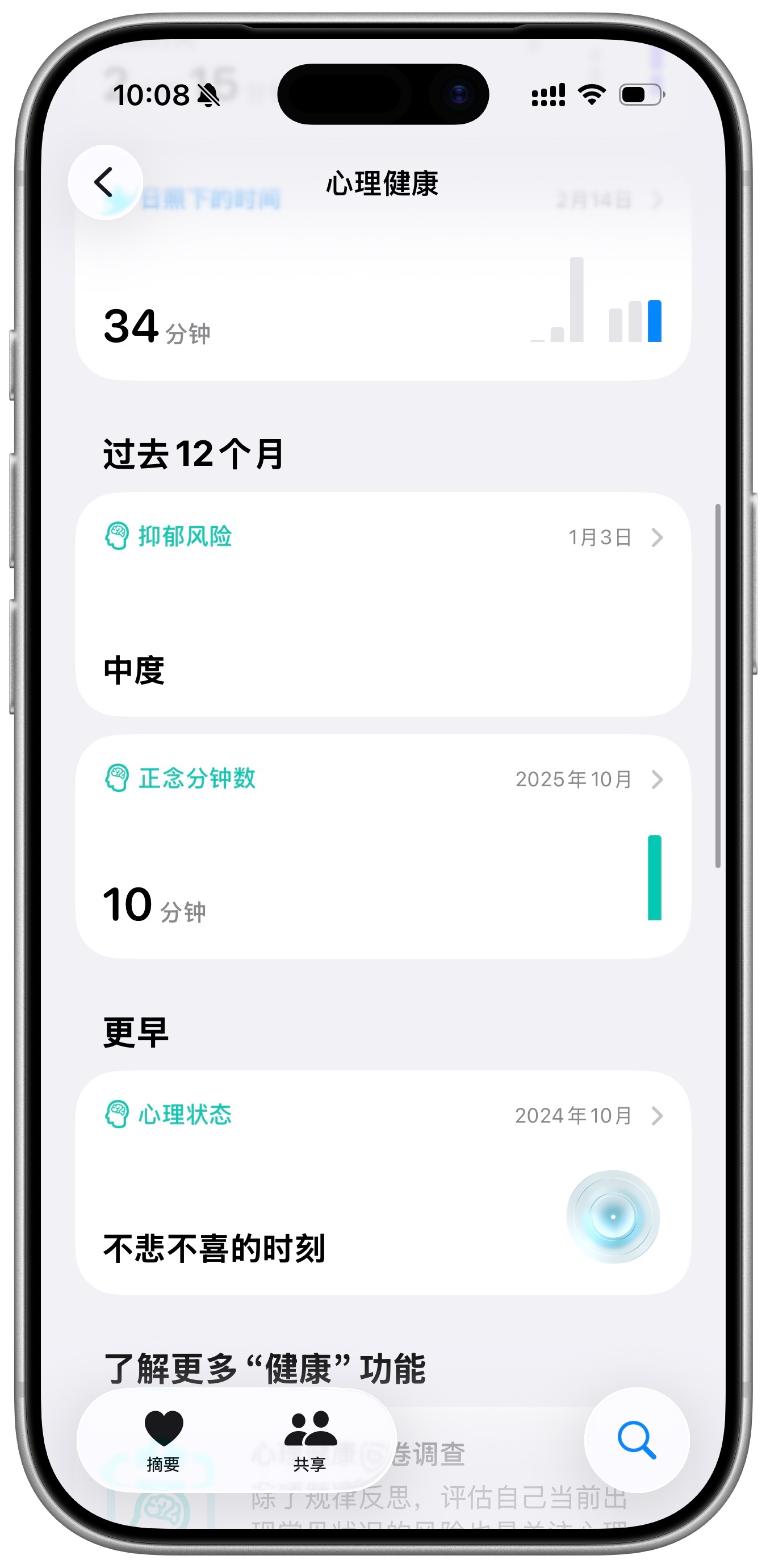 刚用iPhone健康问卷评估了一下,我有中度抑郁风险。