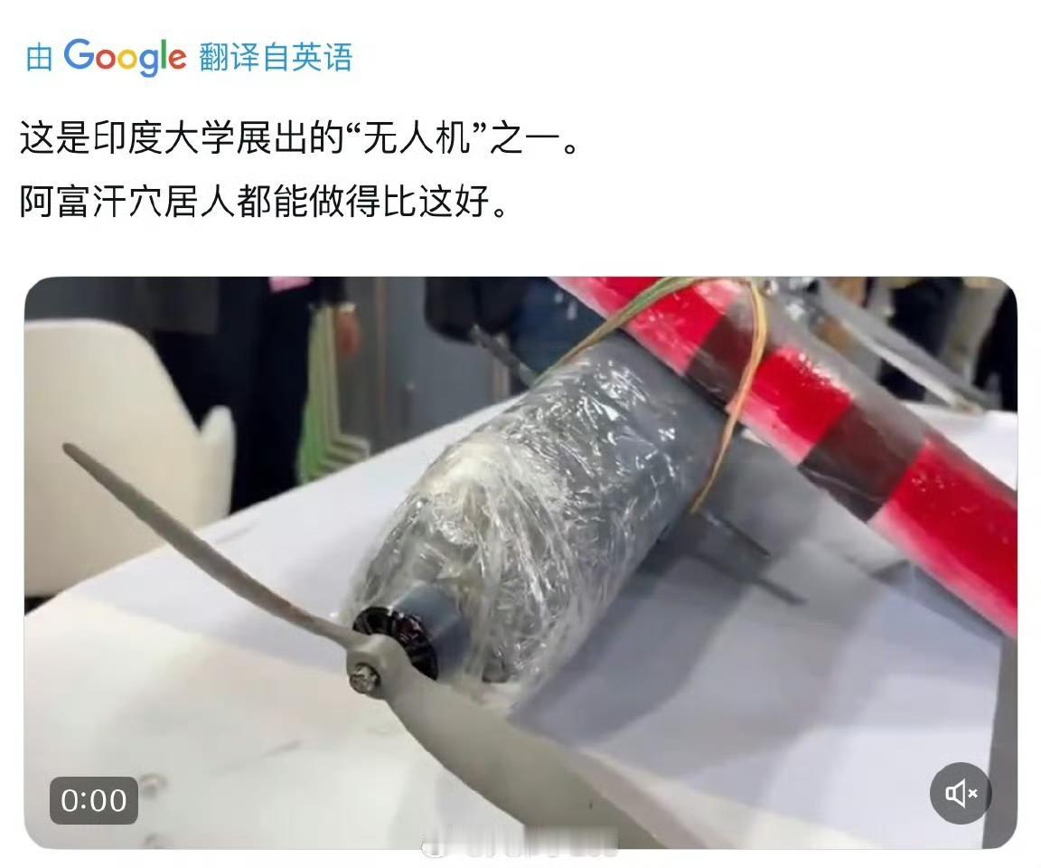粗制滥造!印度人工智能峰会上,印度展示一个用泡沫塑料制成、外层包裹锡箔纸、再用橡胶捆绑的无人机。 在2026年2月16日开幕的印度人工智能(AI)影响力峰会上,加尔戈蒂亚斯大学被曝展出一款由泡沫塑料制成、外层包裹锡箔纸并用橡胶捆绑的简陋无人机,外观粗糙如同手工课作业,引发广泛嘲讽。该设备被指缺乏基本工程完整性,与峰会“有史以来规模最大”的宣传形成强烈反差